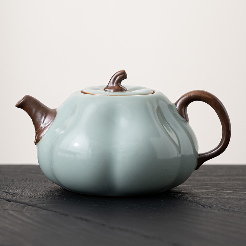宋朴天青南瓜壶汝窑茶壶陶瓷手工单壶大号功夫茶具汝瓷可养泡茶壶
