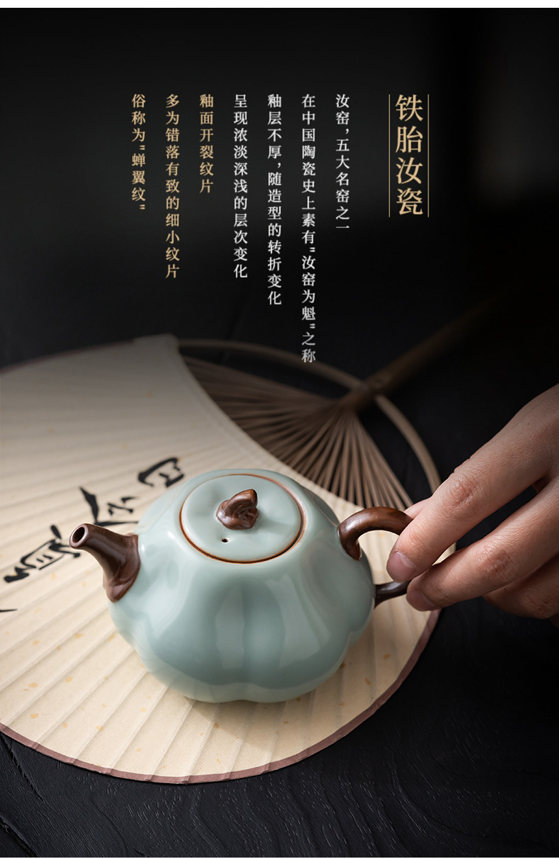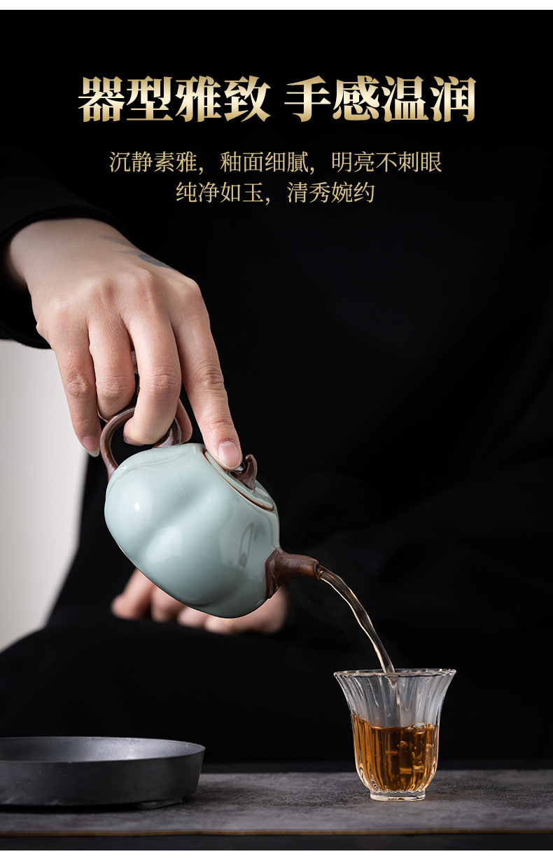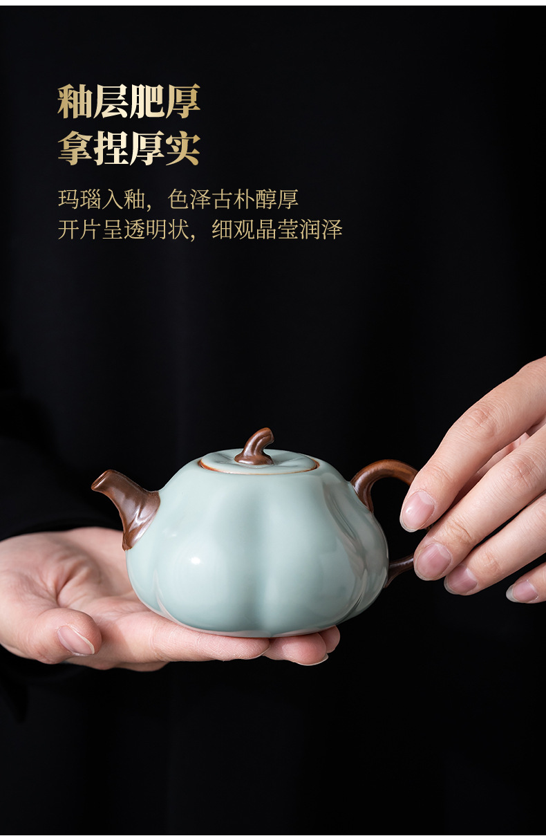 宋朴天青南瓜壶汝窑茶壶陶瓷手工单壶大号功夫茶具汝瓷可养泡茶壶 投诉