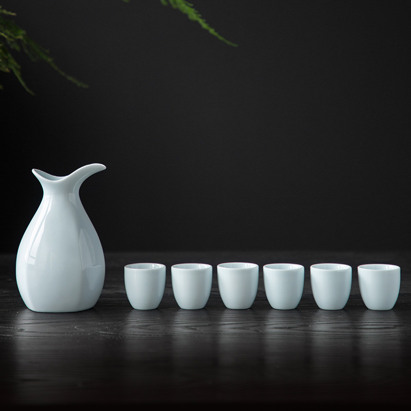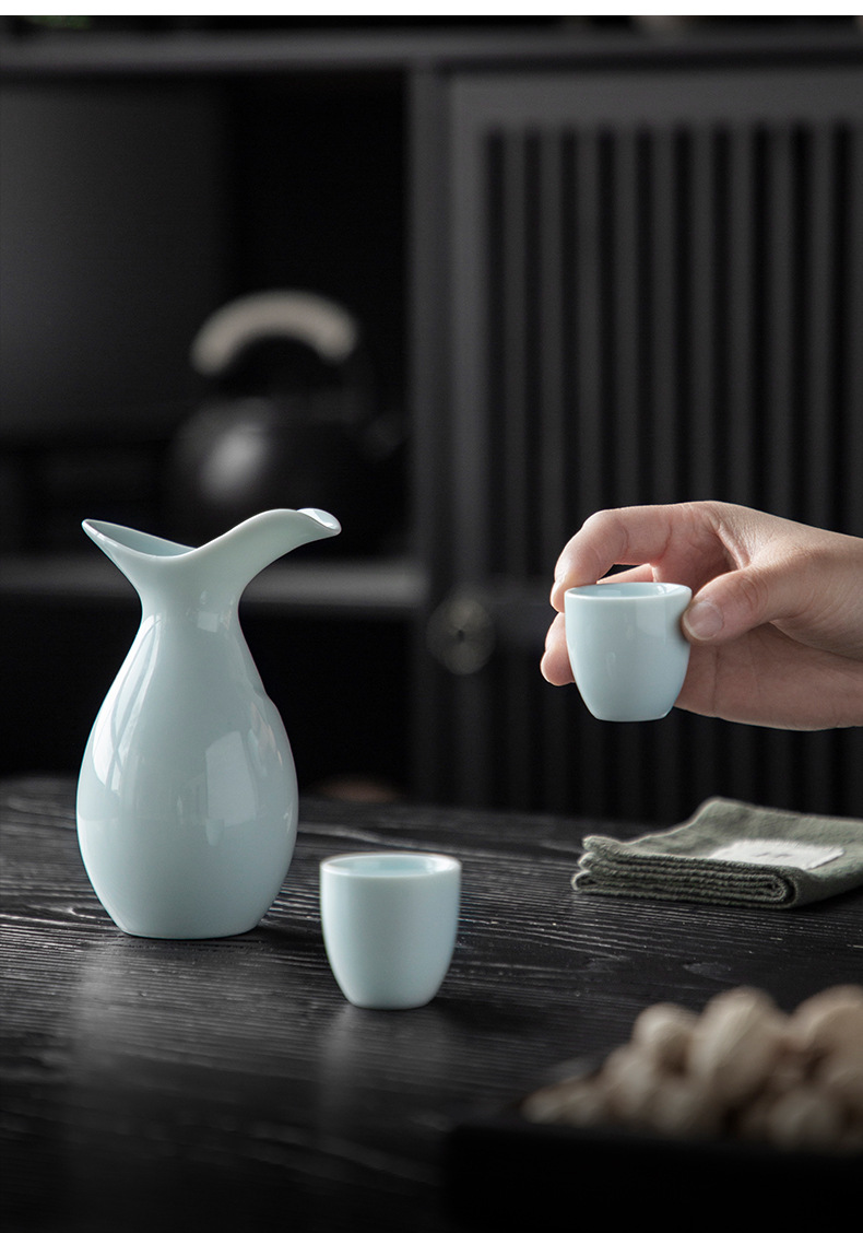 龙泉青瓷陶瓷酒具套装半斤小酒壶分酒器白酒杯黄酒粉青六杯定logo
