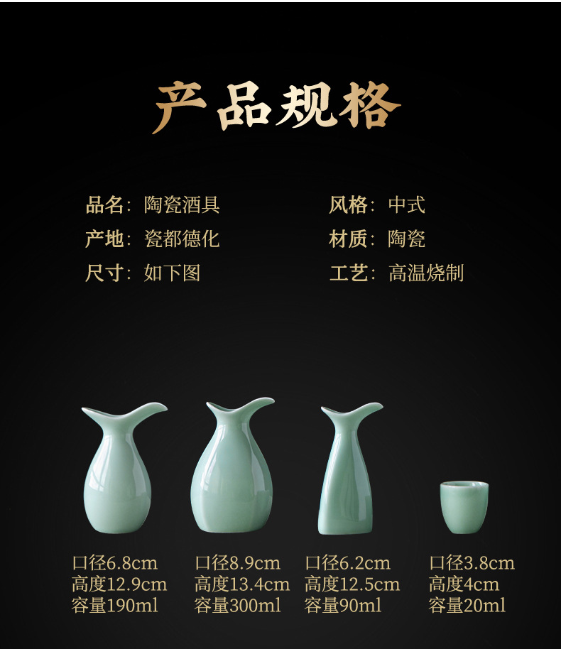 龙泉青瓷陶瓷酒具套装半斤小酒壶分酒器白酒杯黄酒粉青六杯定logo 投诉