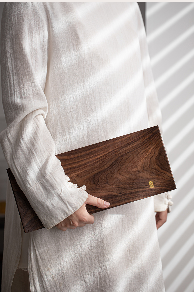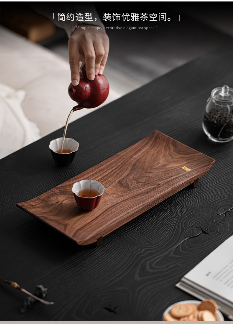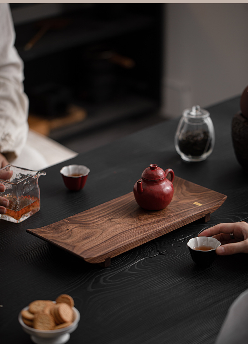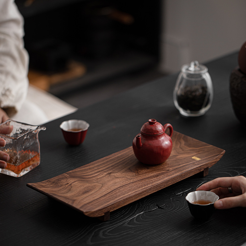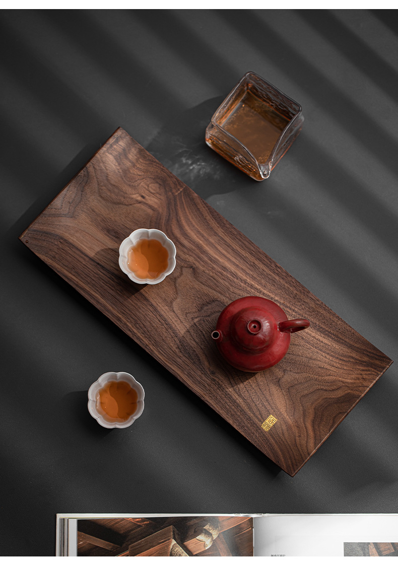 北美黑胡桃木托盘实木茶盘茶杯架茶托一壶两杯新中式茶室文人茶器