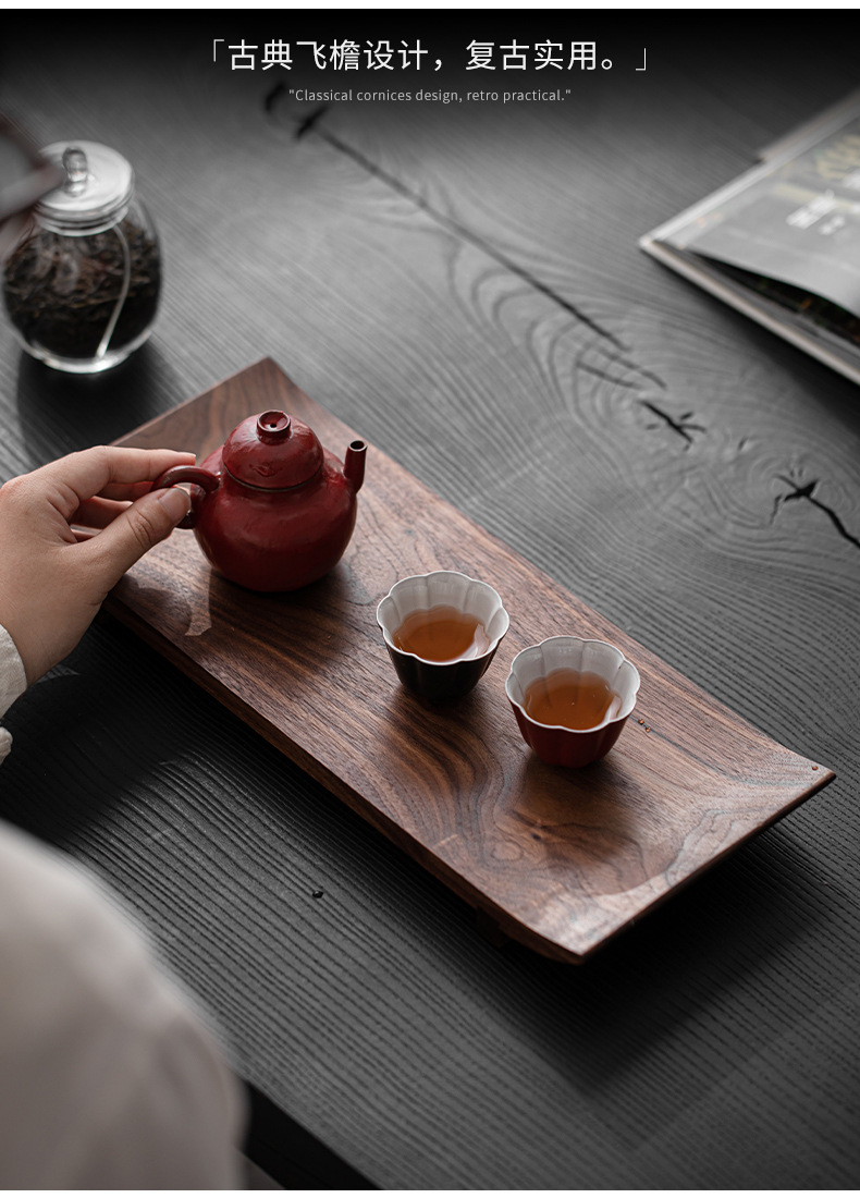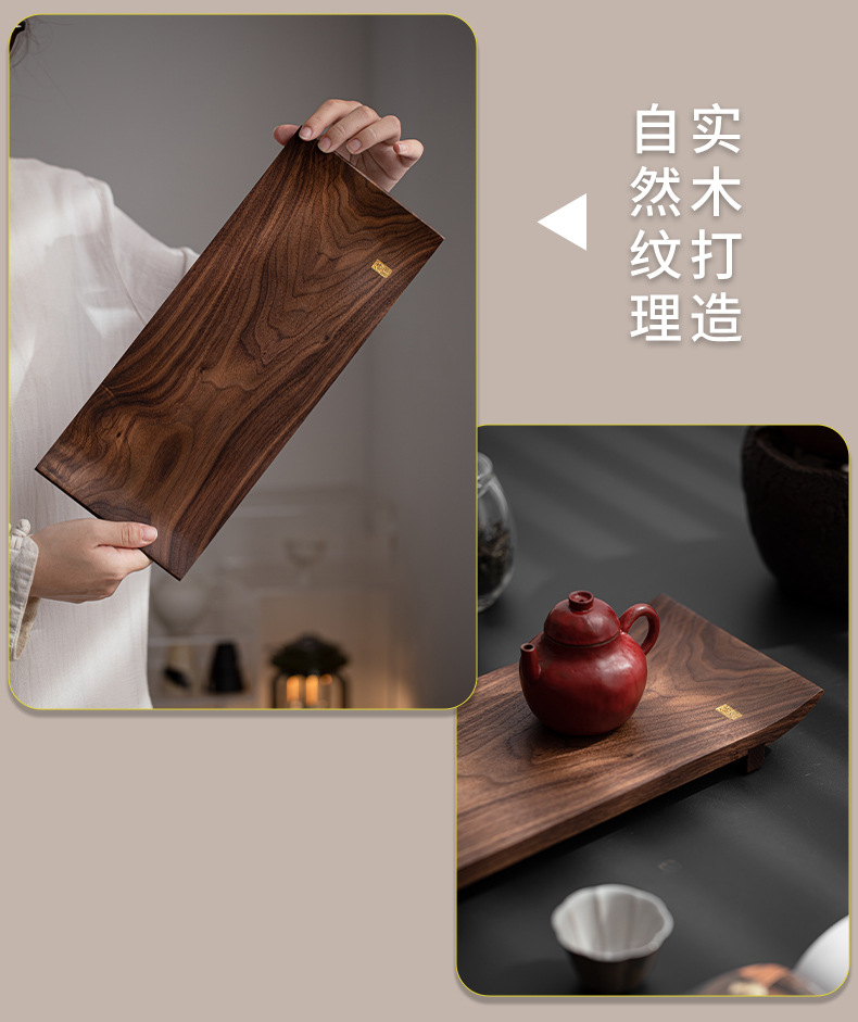 北美黑胡桃木托盘实木茶盘茶杯架茶托一壶两杯新中式茶室文人茶器 投诉