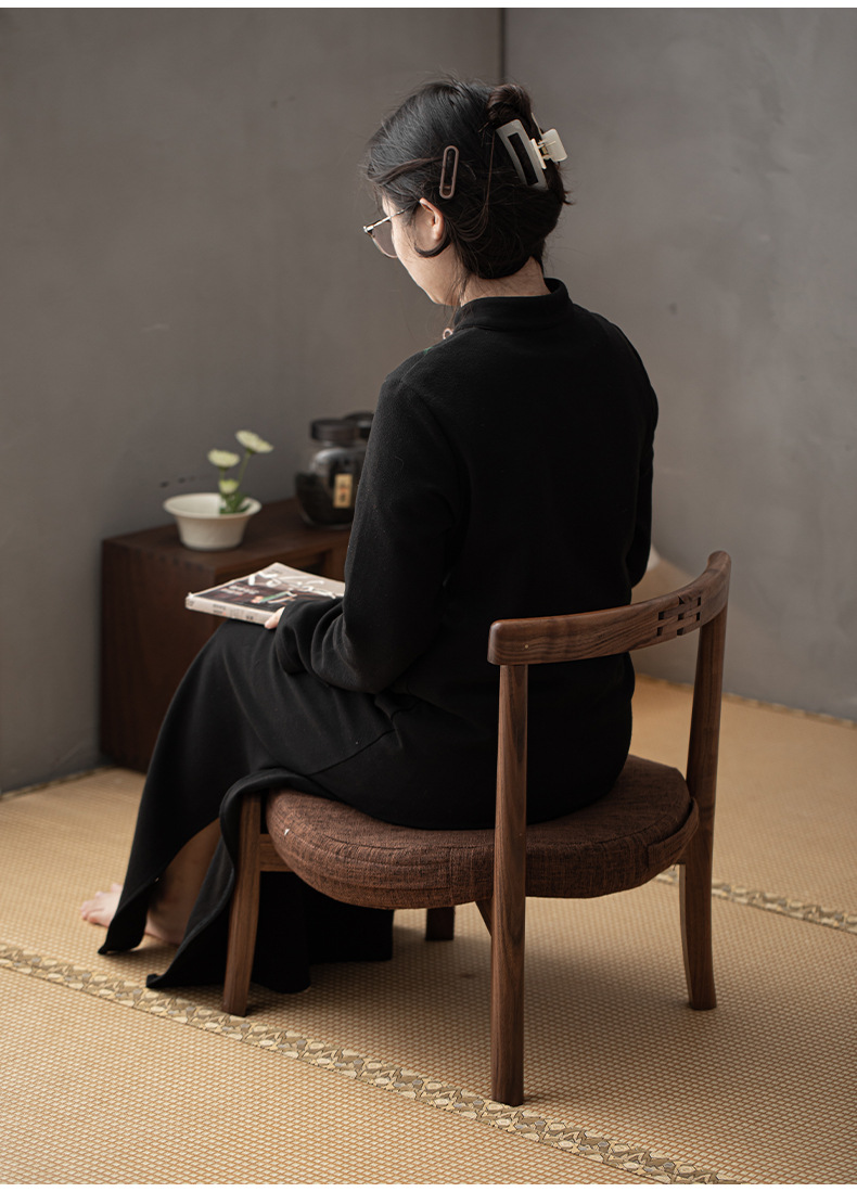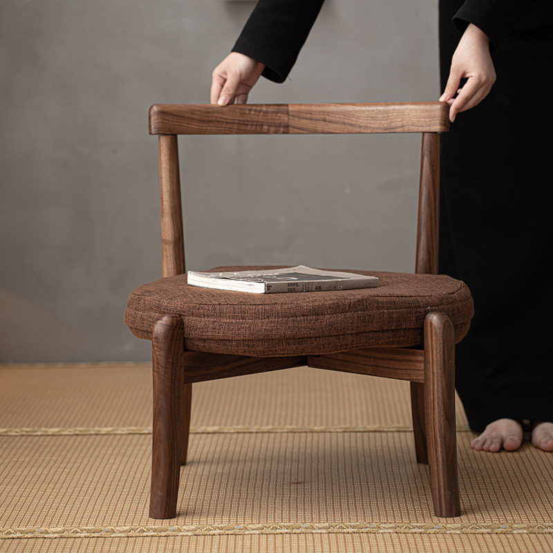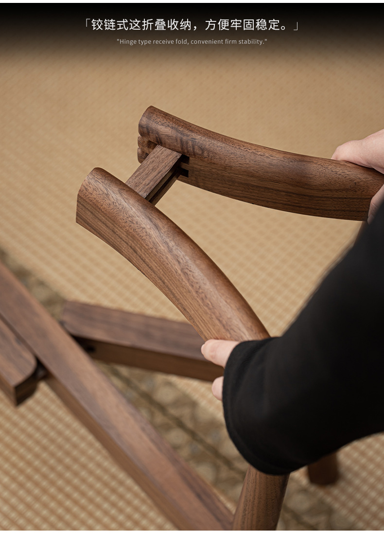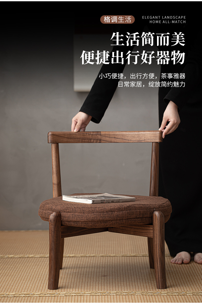 新中式胡桃木可折叠蒲团椅简约飘窗椅 高端户外便携座椅茶椅矮椅 投诉