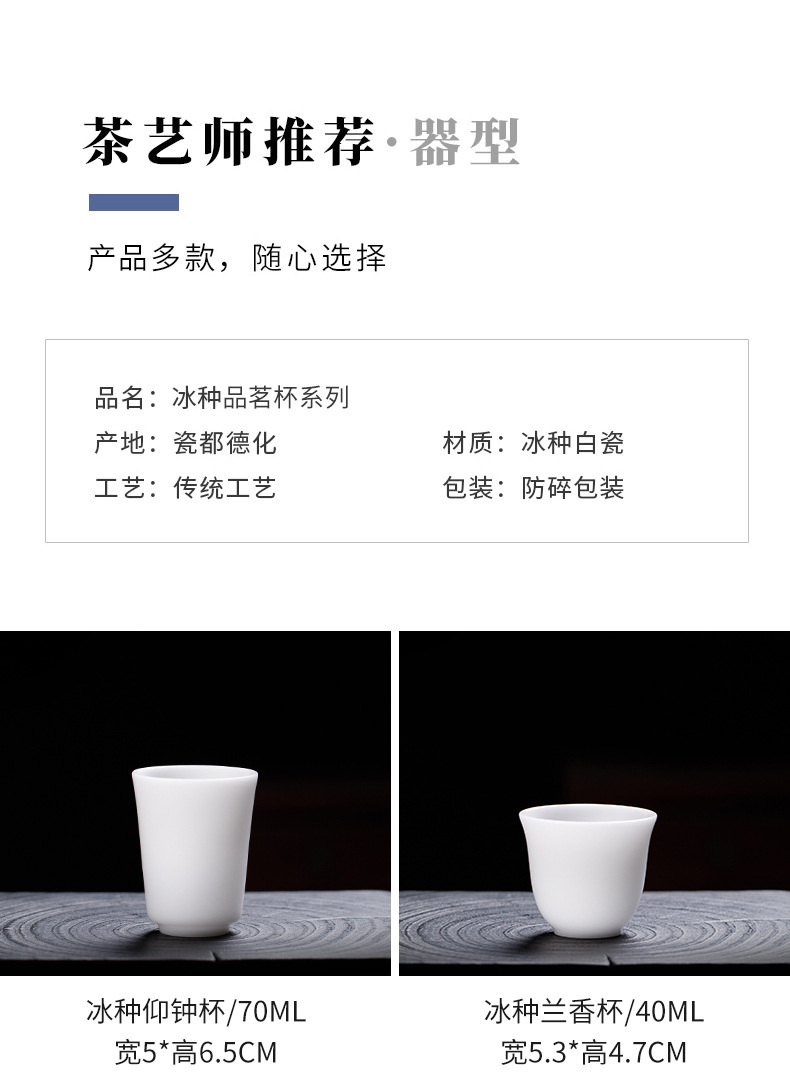 冰种玉瓷茶杯主人杯家用陶瓷杯单杯个人专用品茗杯羊脂玉瓷定logo 投诉