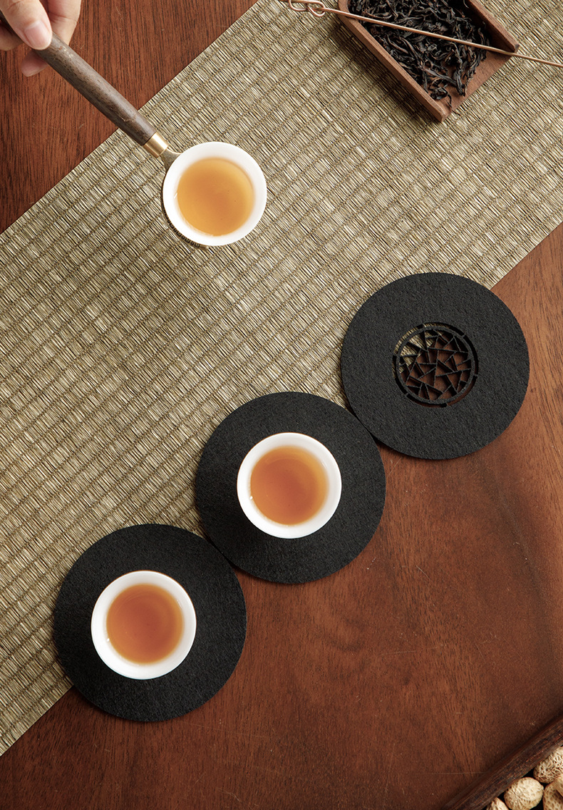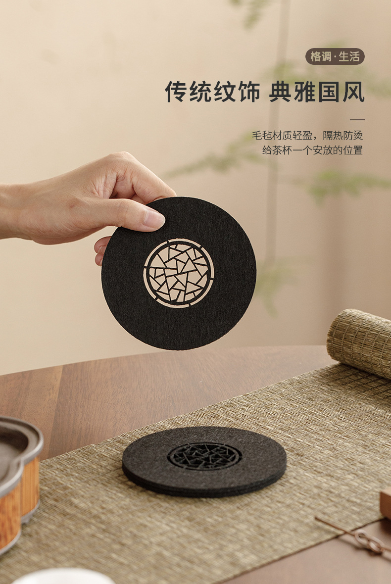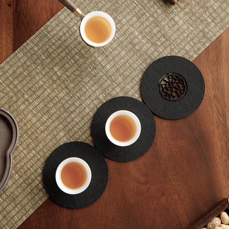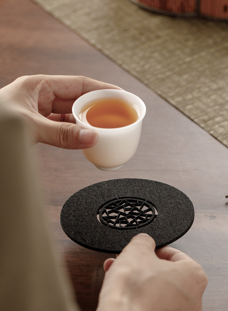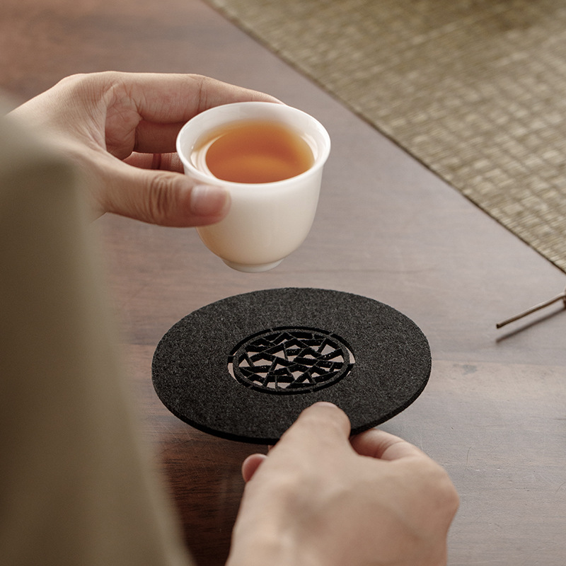原创设计新中式雅园江南中国风吸水毛毡杯垫杯托中式镂空壶承垫子