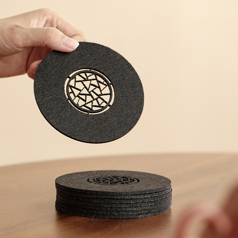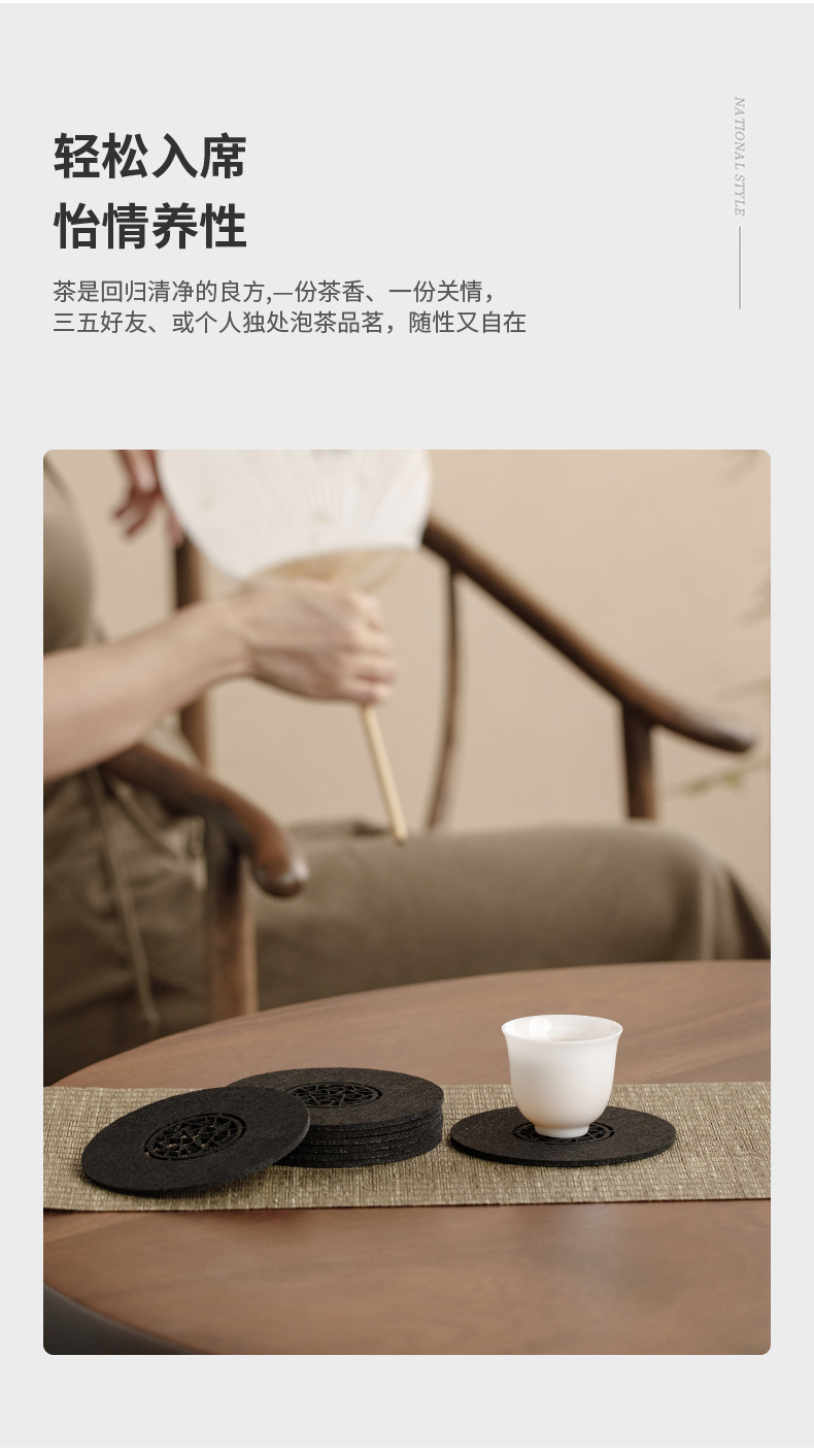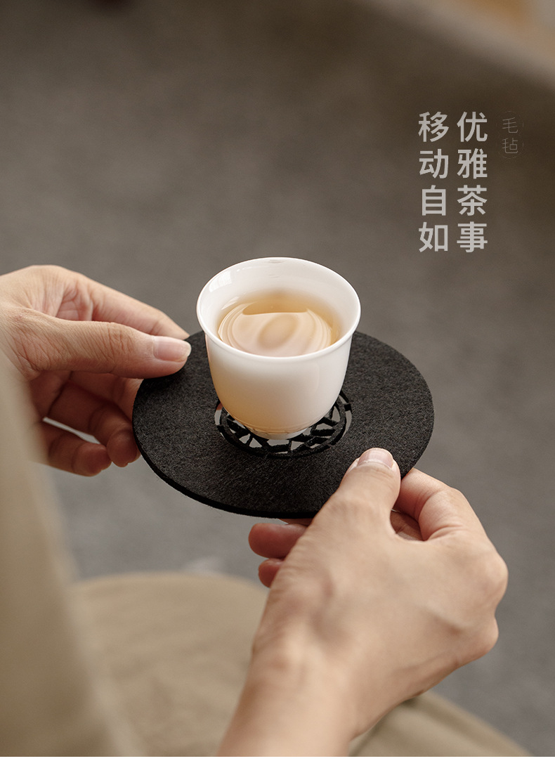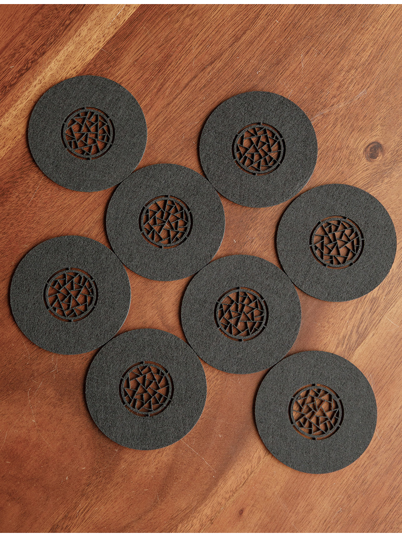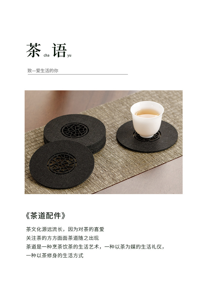 原创设计新中式雅园江南中国风吸水毛毡杯垫杯托中式镂空壶承垫子