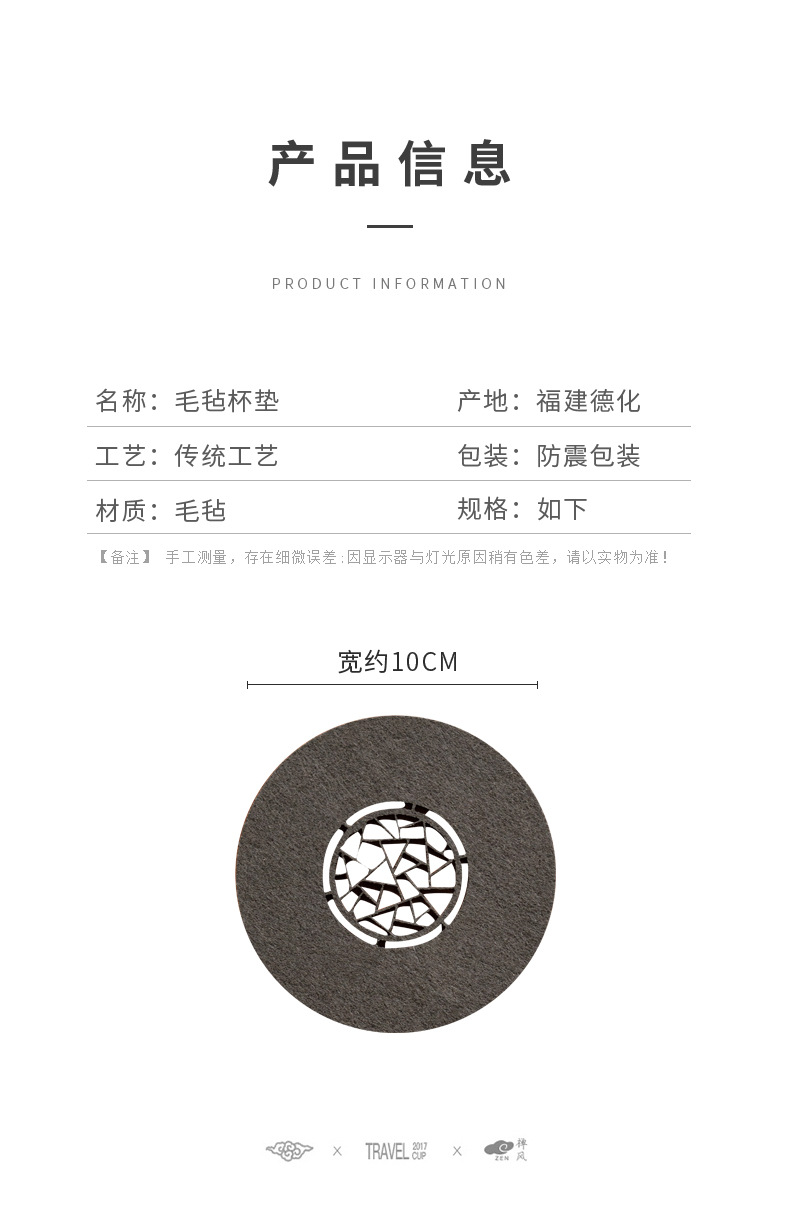 原创设计新中式雅园江南中国风吸水毛毡杯垫杯托中式镂空壶承垫子 投诉