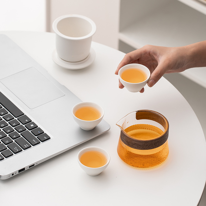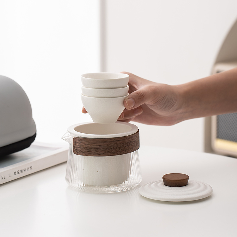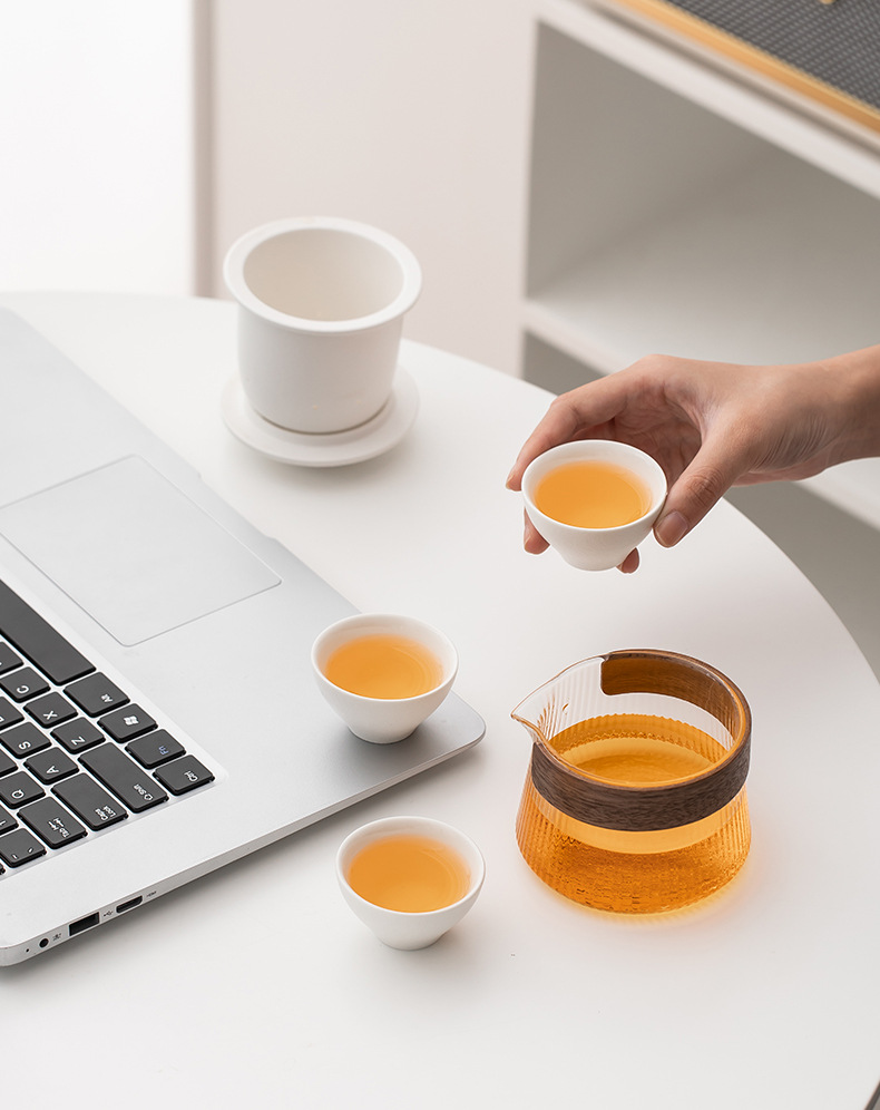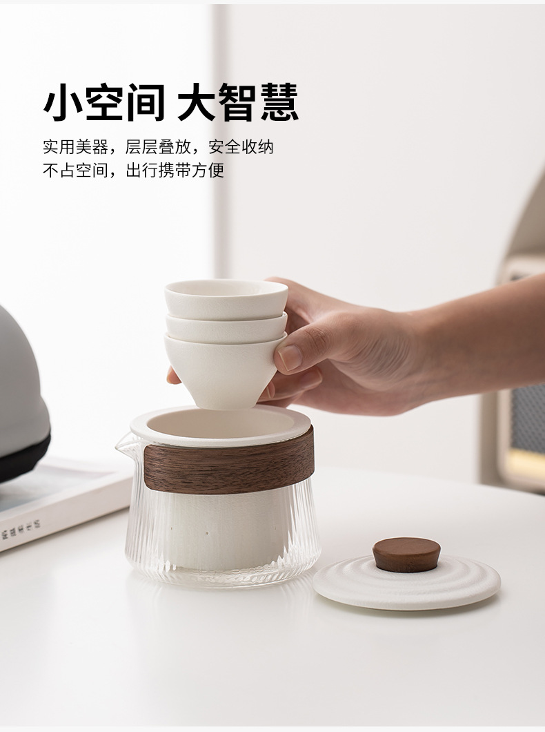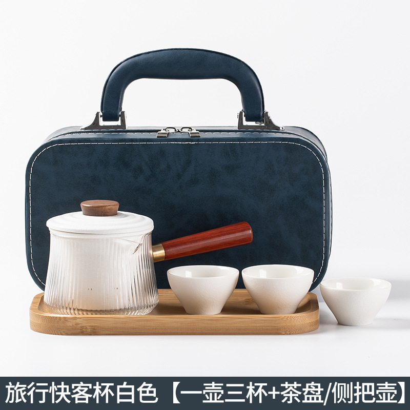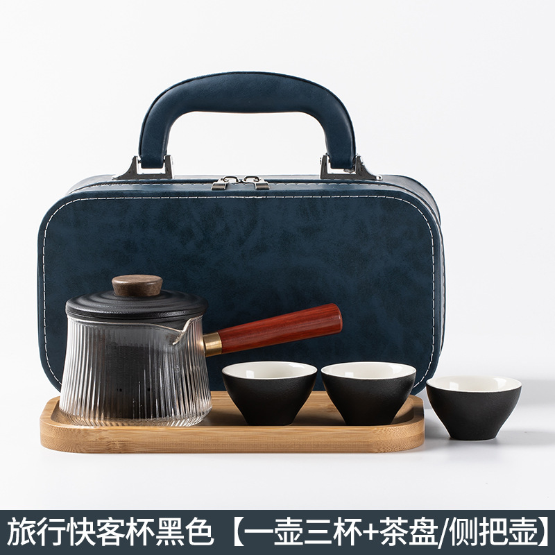 玻璃旅行功夫茶具套装玻璃快客杯便携式侧把壶户外泡茶企业定logo