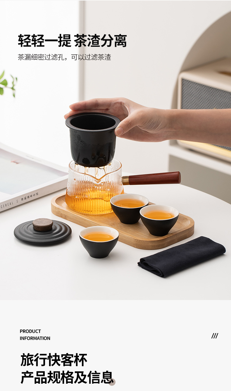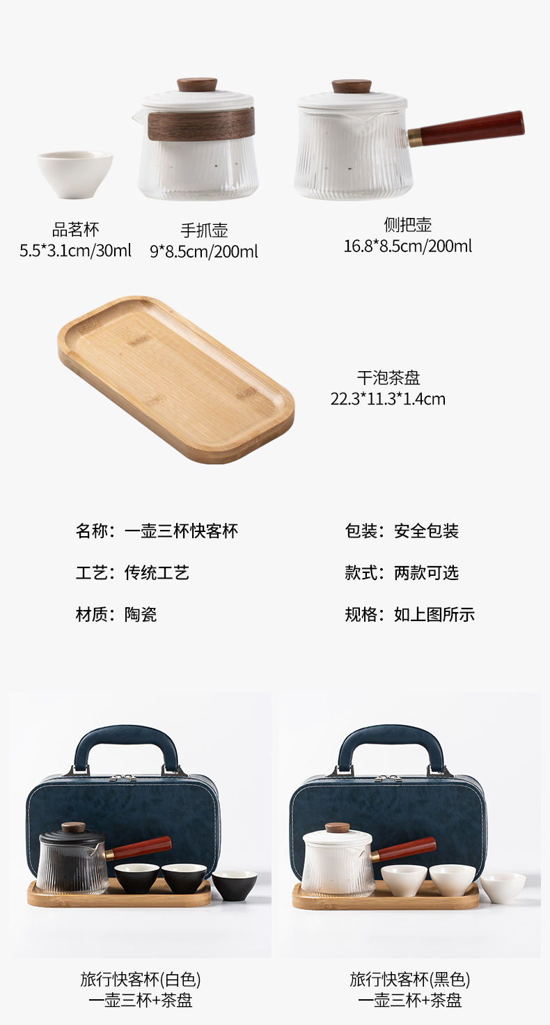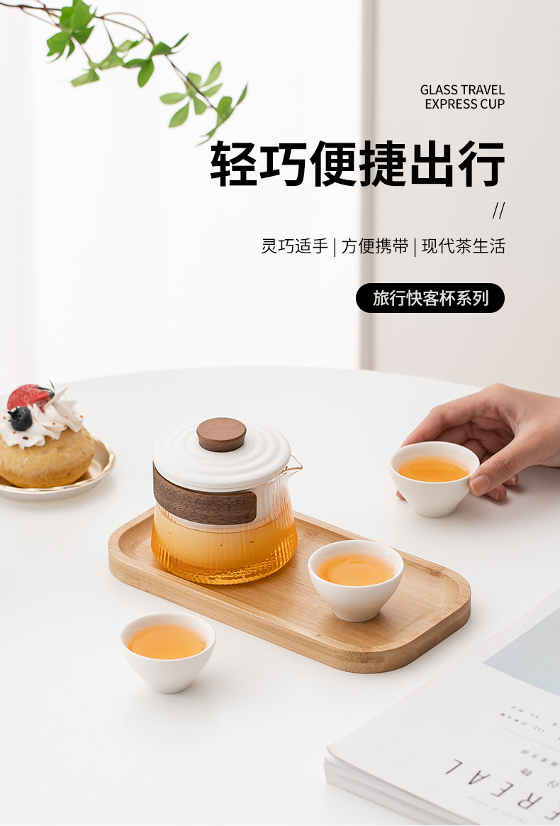 玻璃旅行功夫茶具套装玻璃快客杯便携式侧把壶户外泡茶企业定logo 投诉
