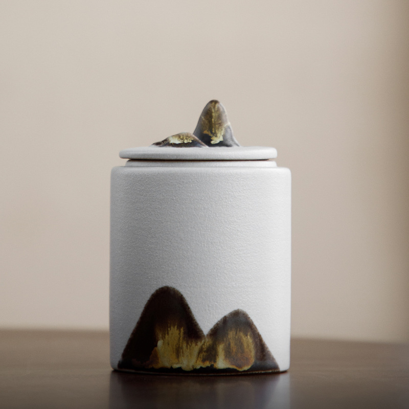 远山便携茶叶罐陶瓷密封罐小号手绘红白龙井茶定logo企业伴手礼 投诉