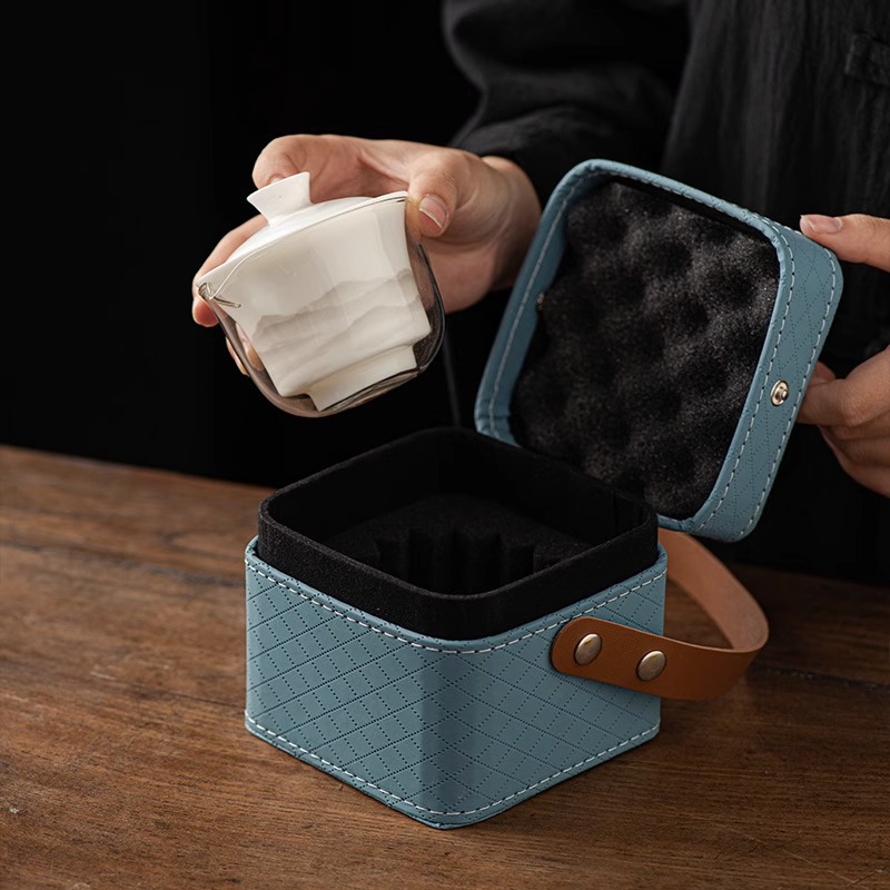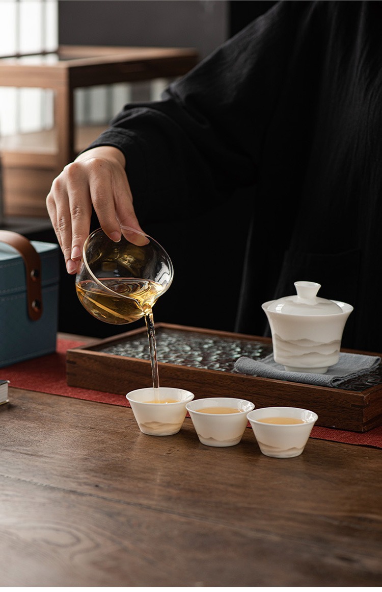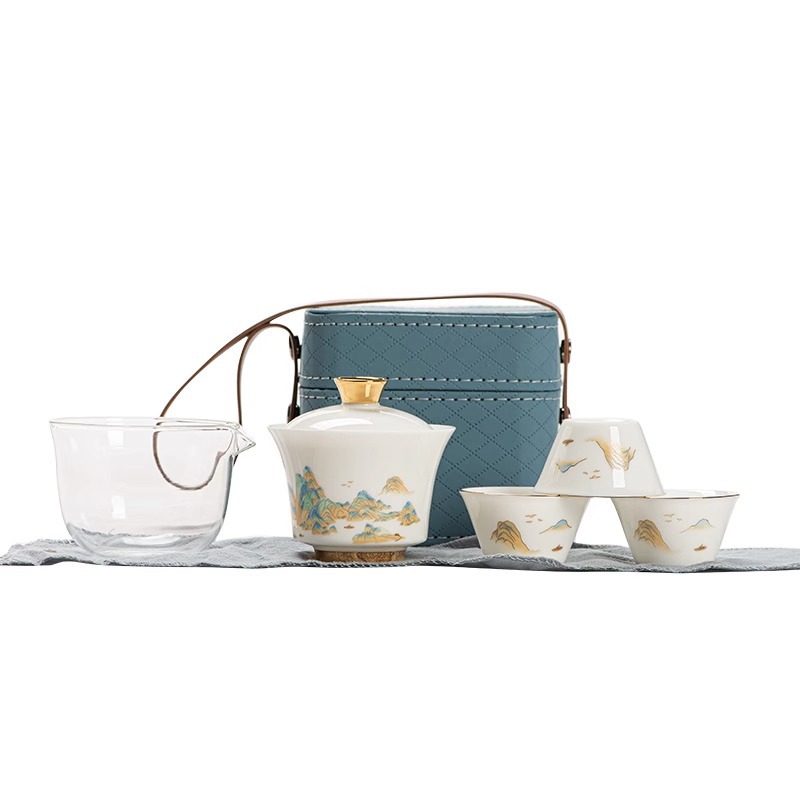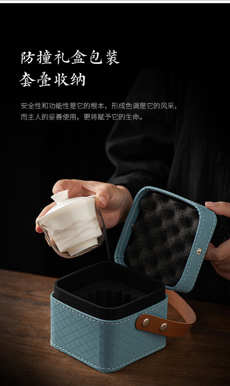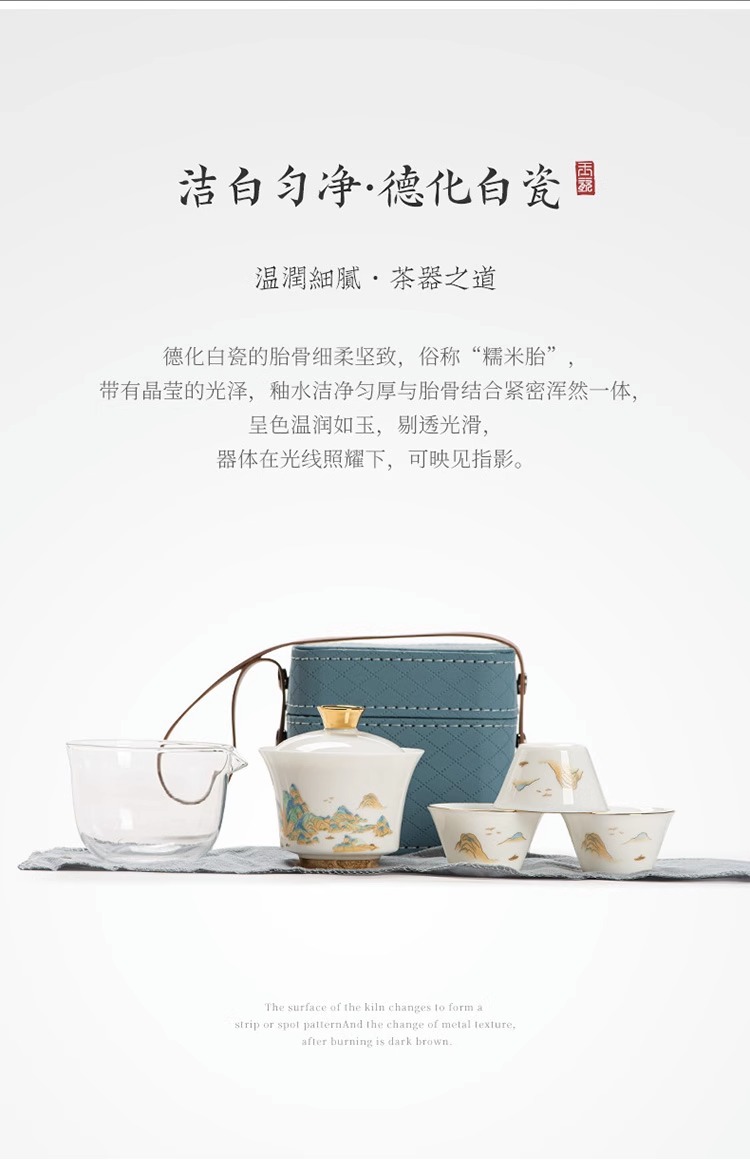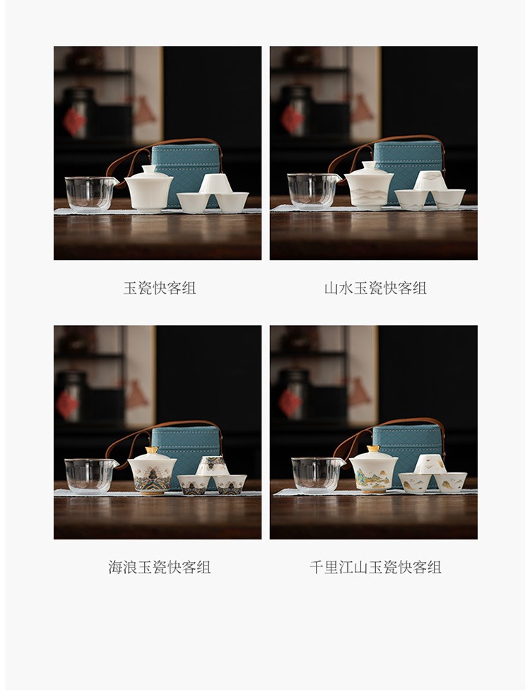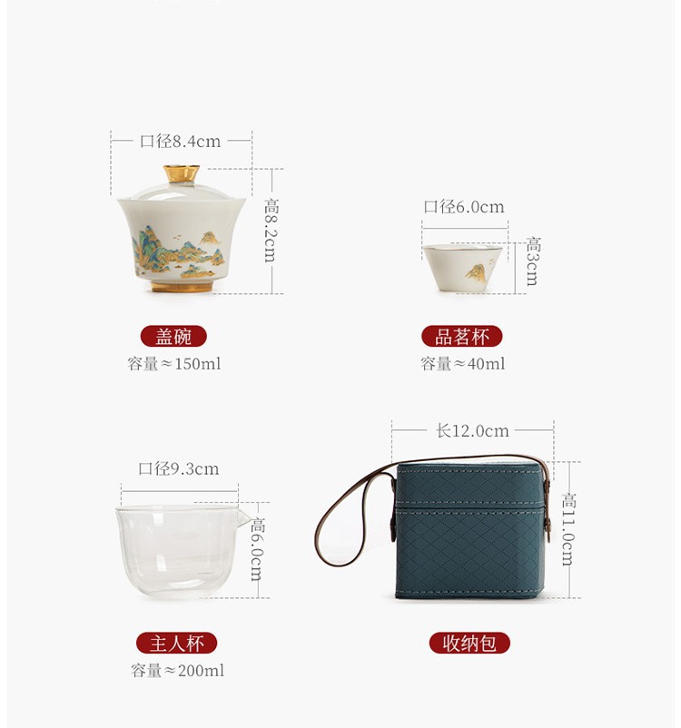 水墨山水白瓷快客杯一壶三杯旅行茶具皮盒便携户外盖碗泡茶具套装 投诉