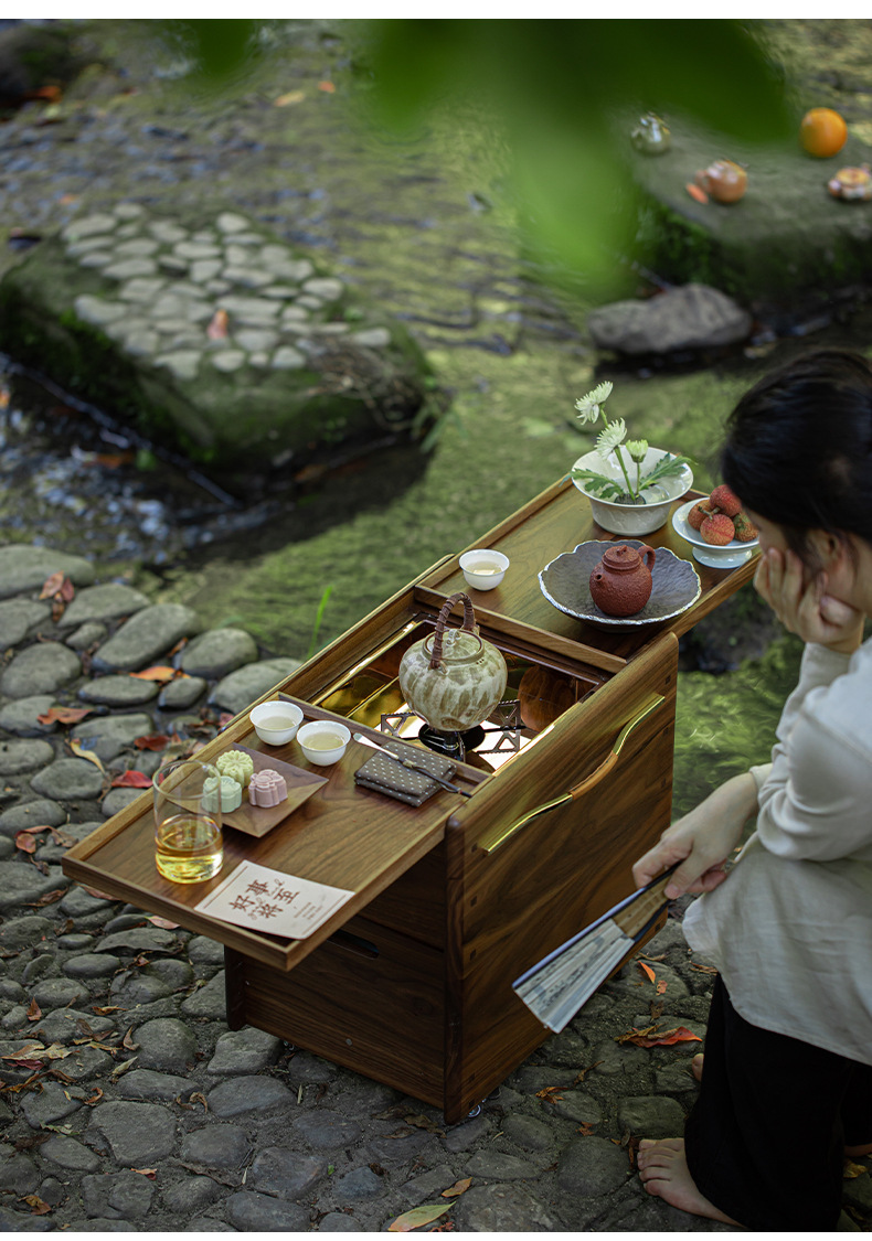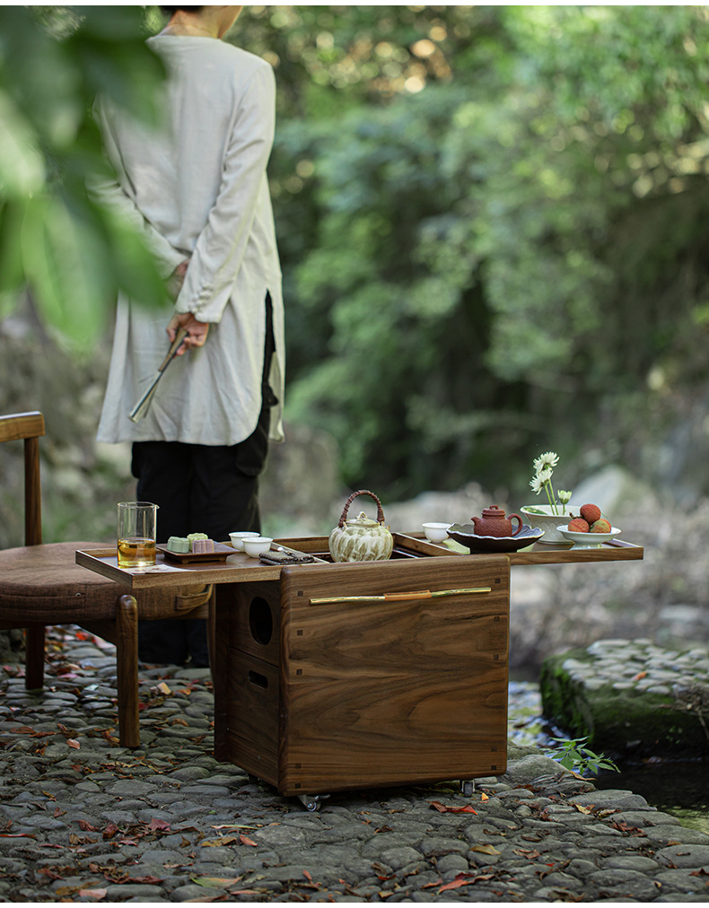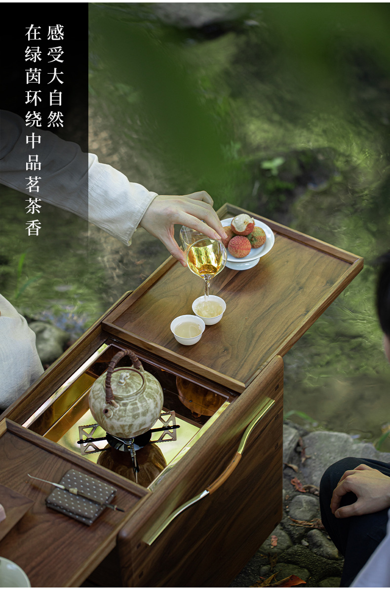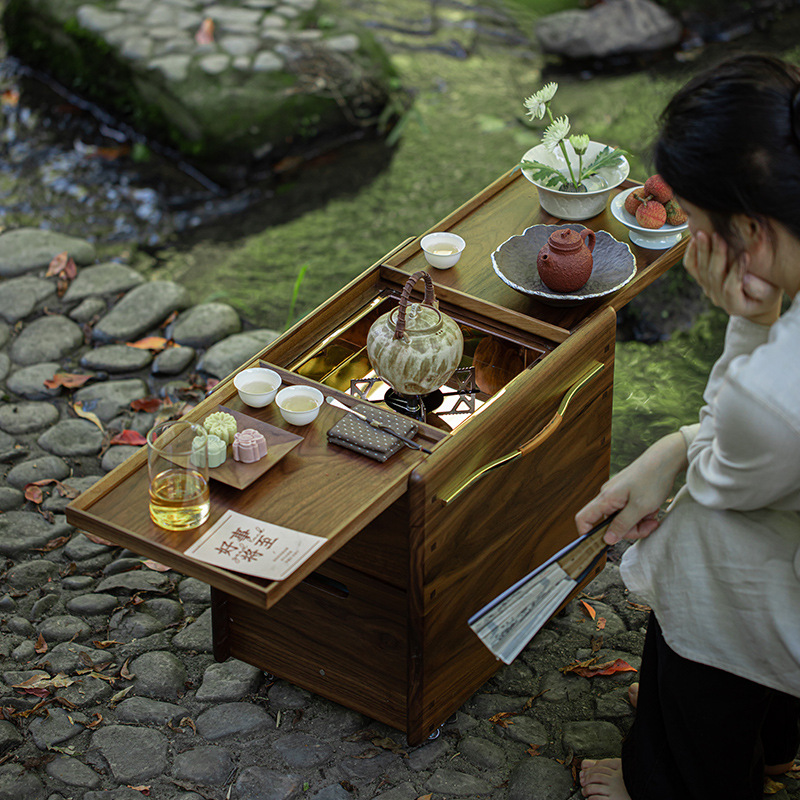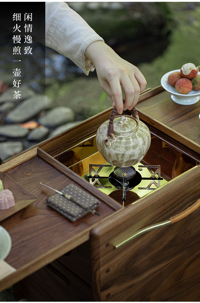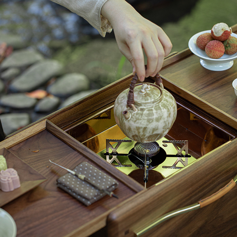 北美黑胡桃木围炉煮茶炭炉户外烧烤露营电陶炉泡茶台碳炉卡式炉桌