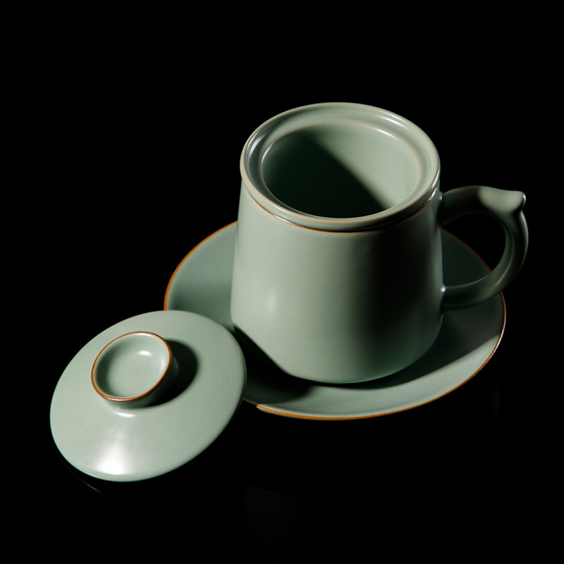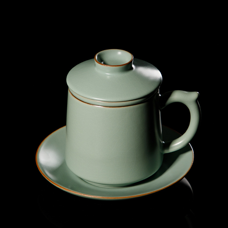 宋朴汝窑茶杯大容量陶瓷茶水分离过滤泡茶水杯办公室个人专用杯子
