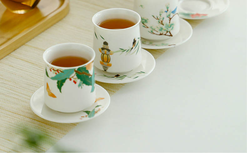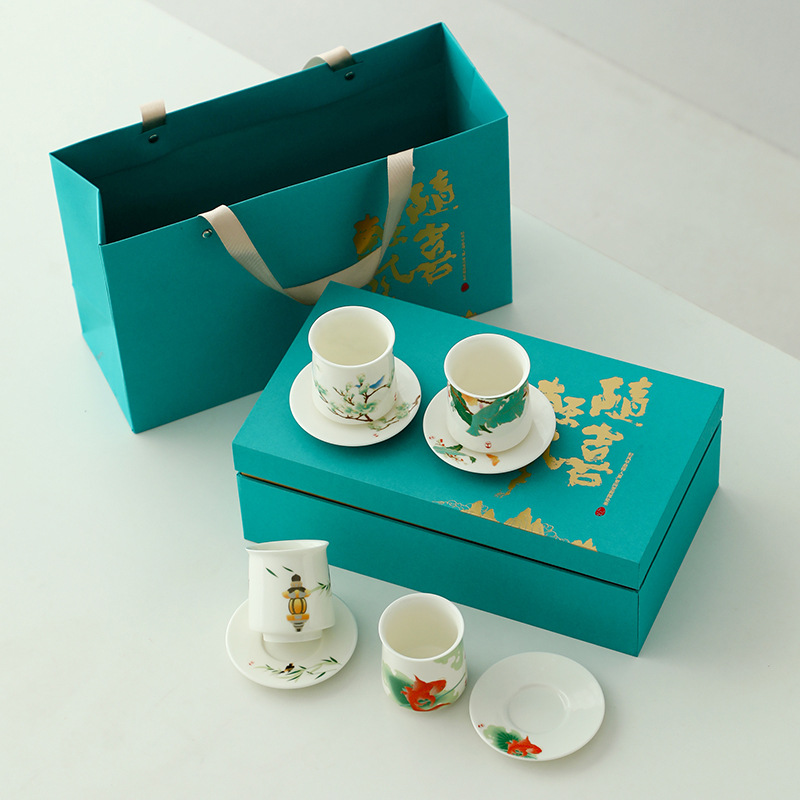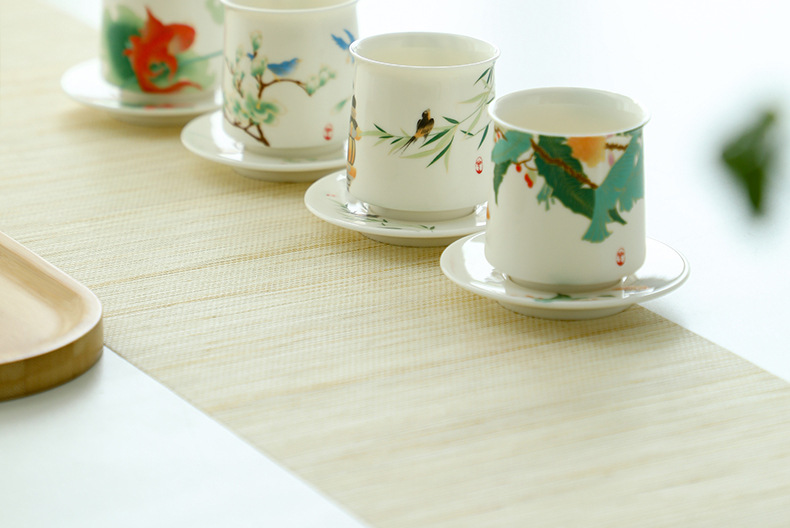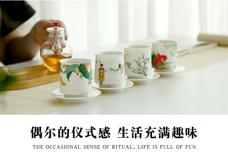 四季如春陶瓷品茗杯主人杯品茗杯泡茶茶杯喝茶杯伴手礼四杯礼盒装
