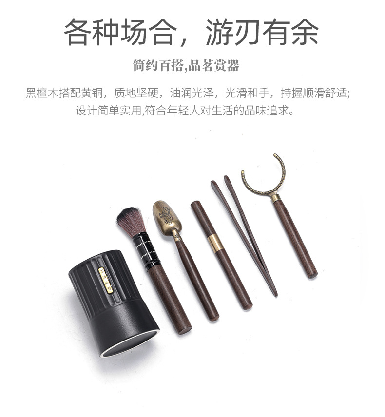 黑陶茶道六君子套装黄铜黑檀木功夫茶具茶道茶艺配件茶夹茶勺茶刀