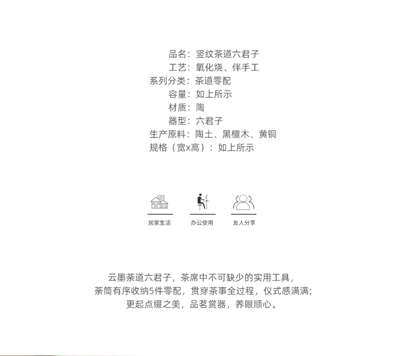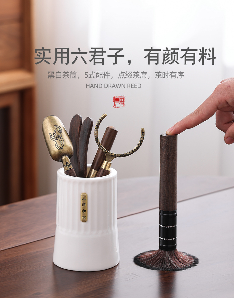 竖纹茶道六君子白色(黑檀木款) ¥0 5000套可售