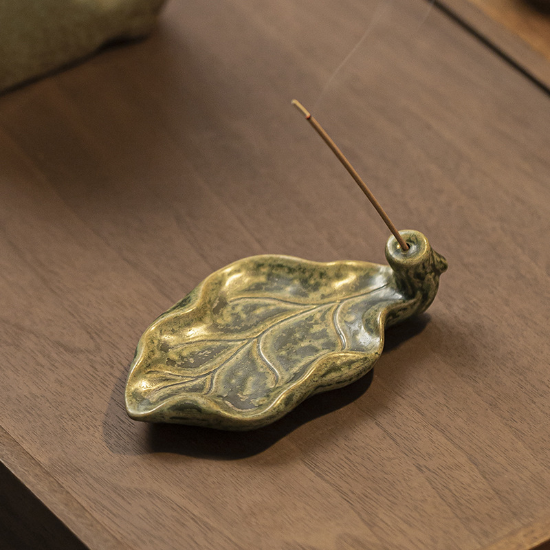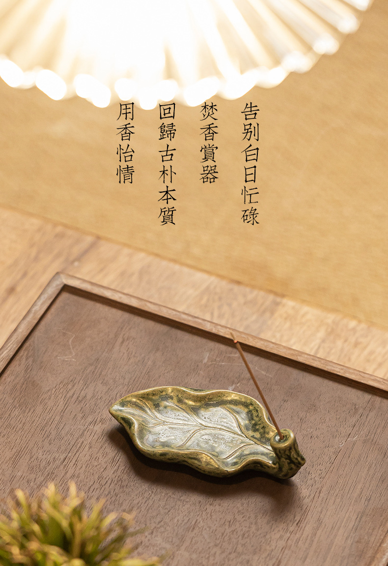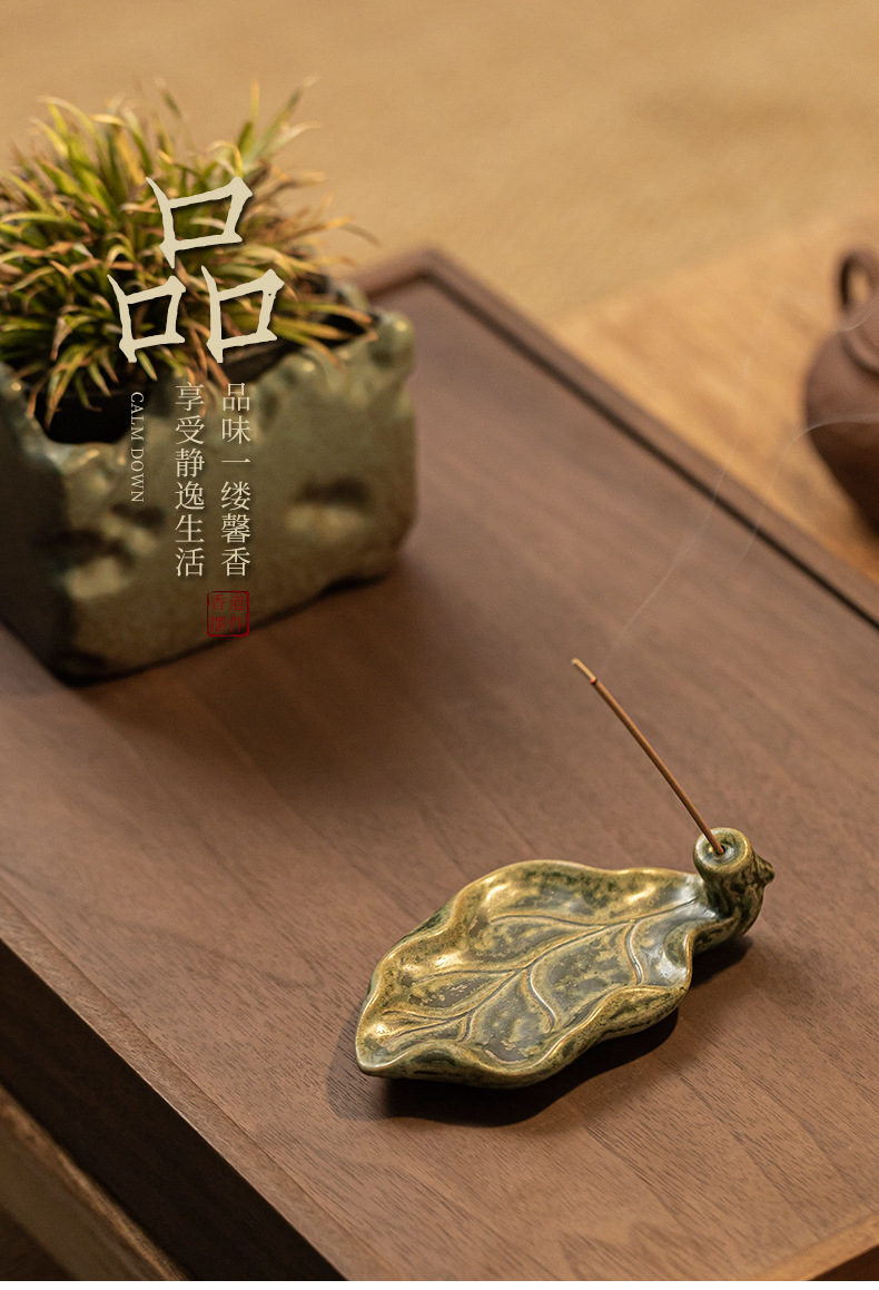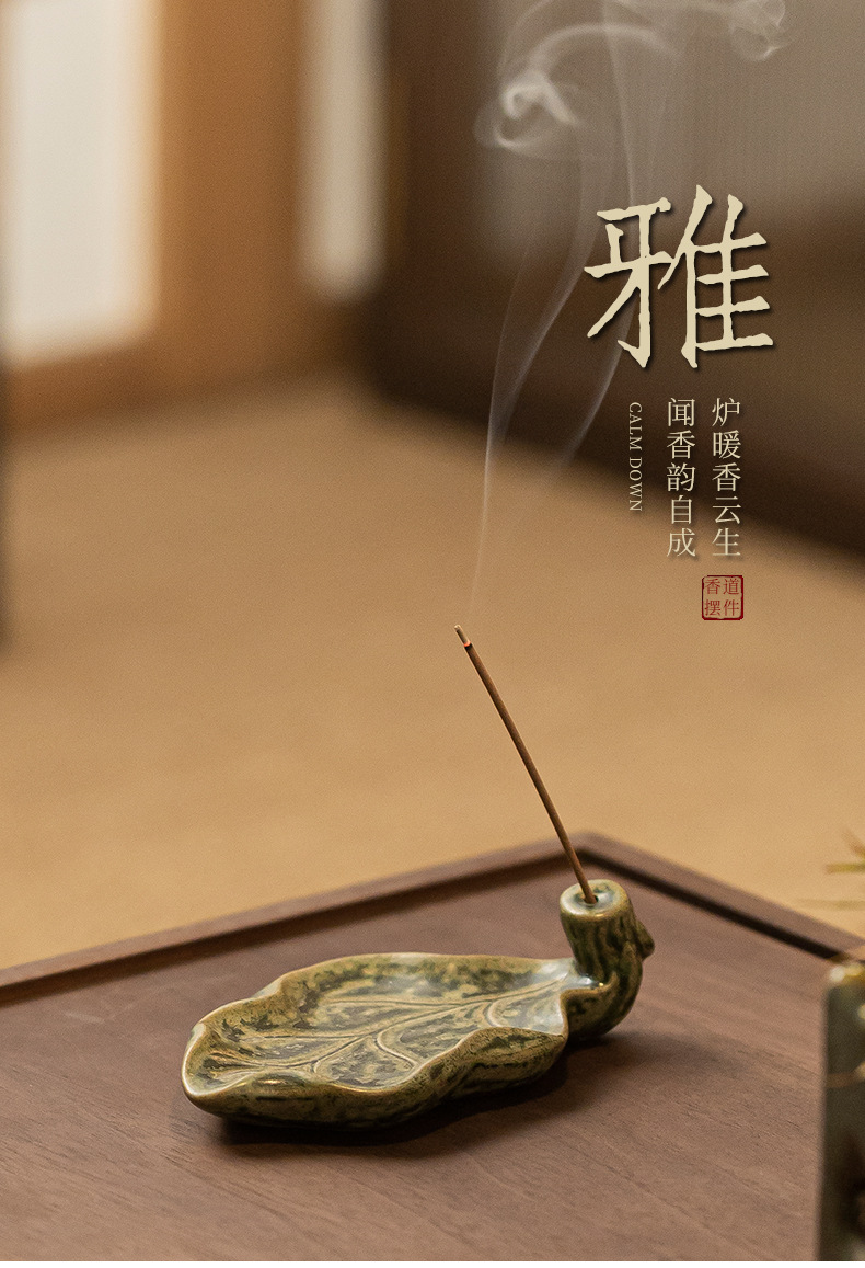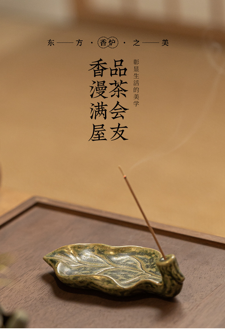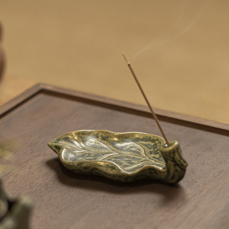 陶瓷树叶线香插家用室内熏香檀香沉香禅意莲花香薰炉茶道摆件
