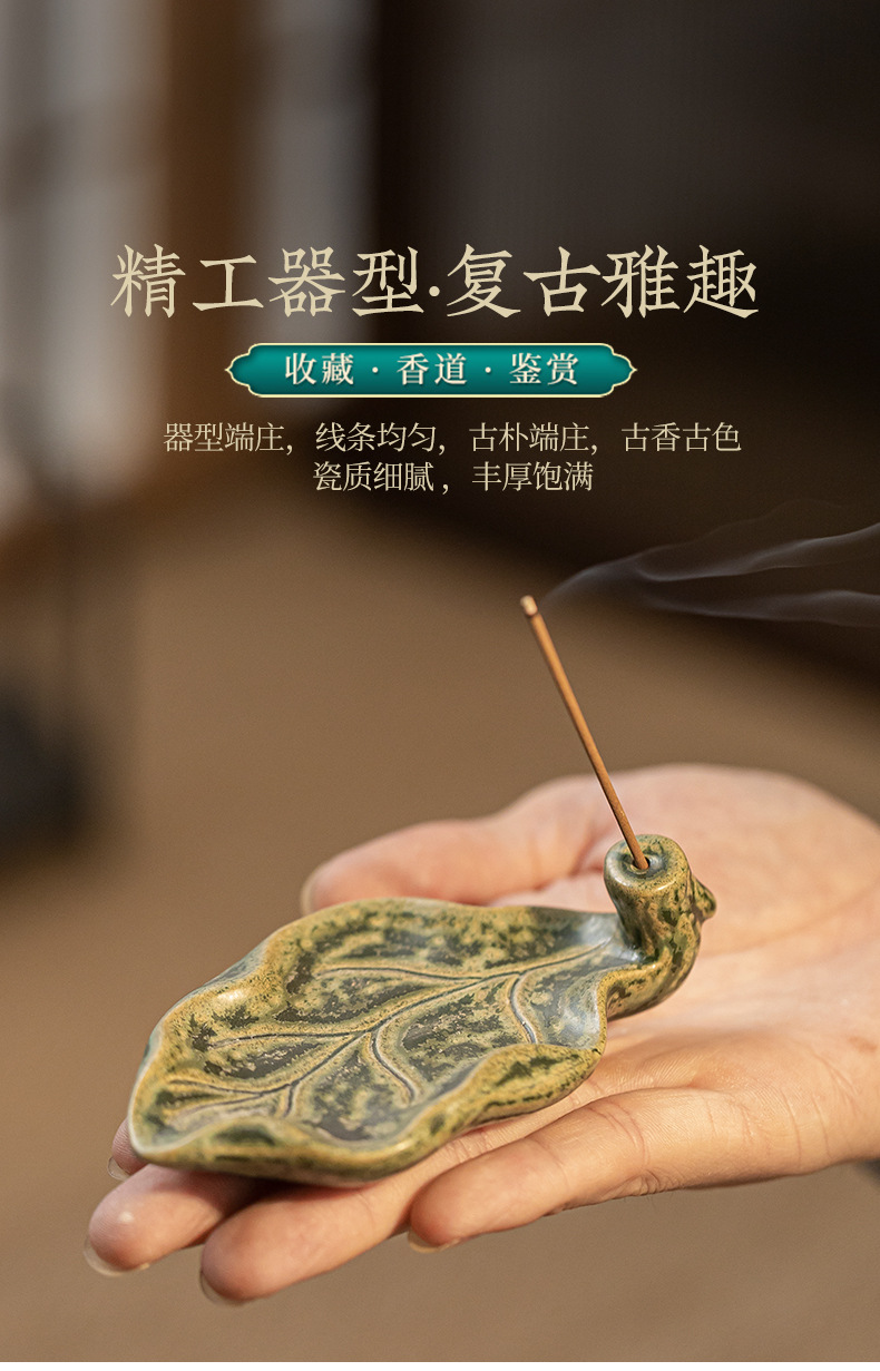 陶瓷树叶线香插家用室内熏香檀香沉香禅意莲花香薰炉茶道摆件 投诉