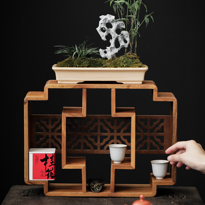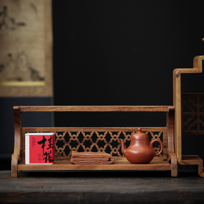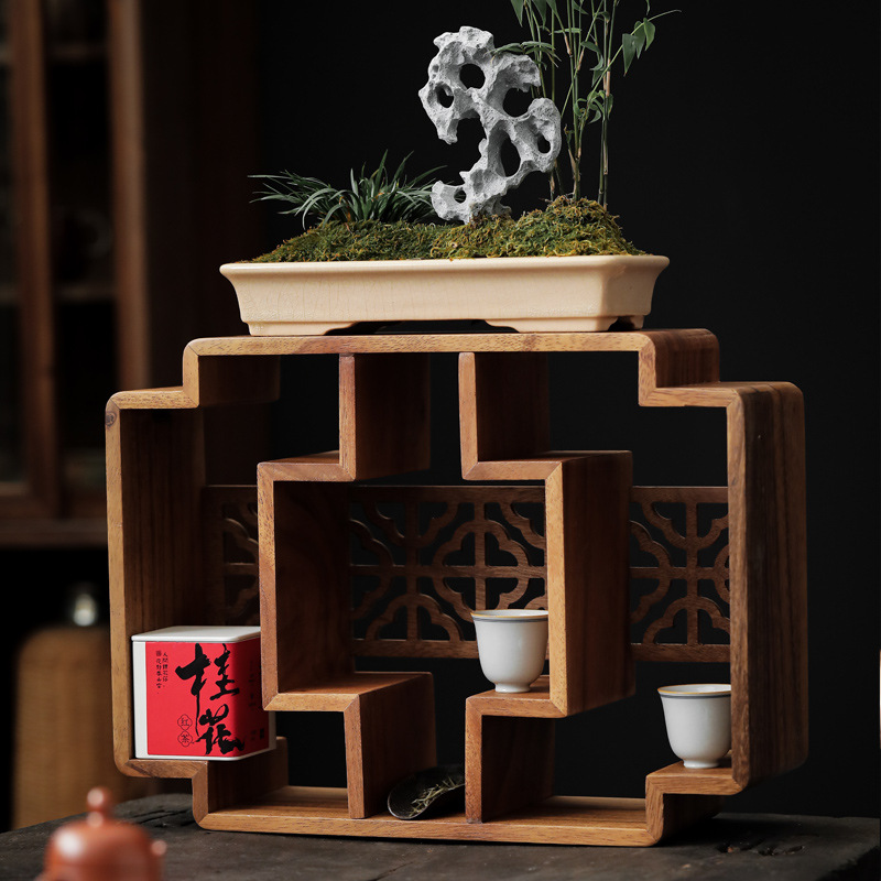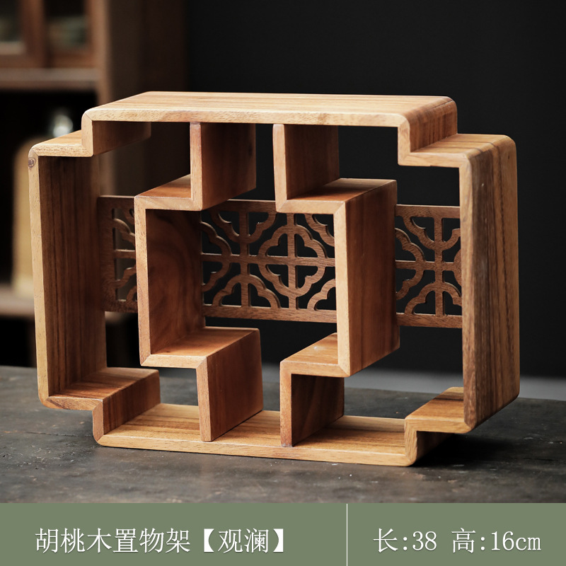 南美胡桃木博古架桌面新中式多宝阁茶杯茶壶展示架方形格子置物柜
