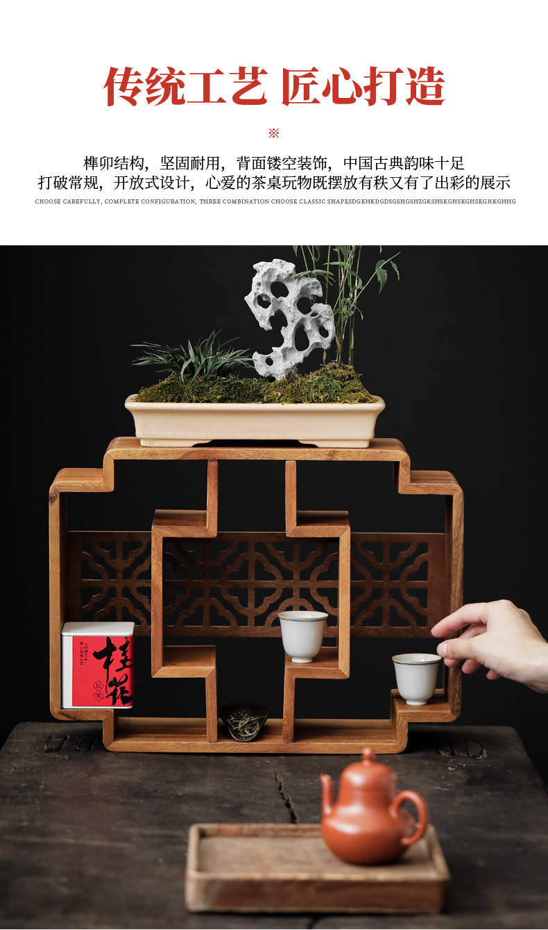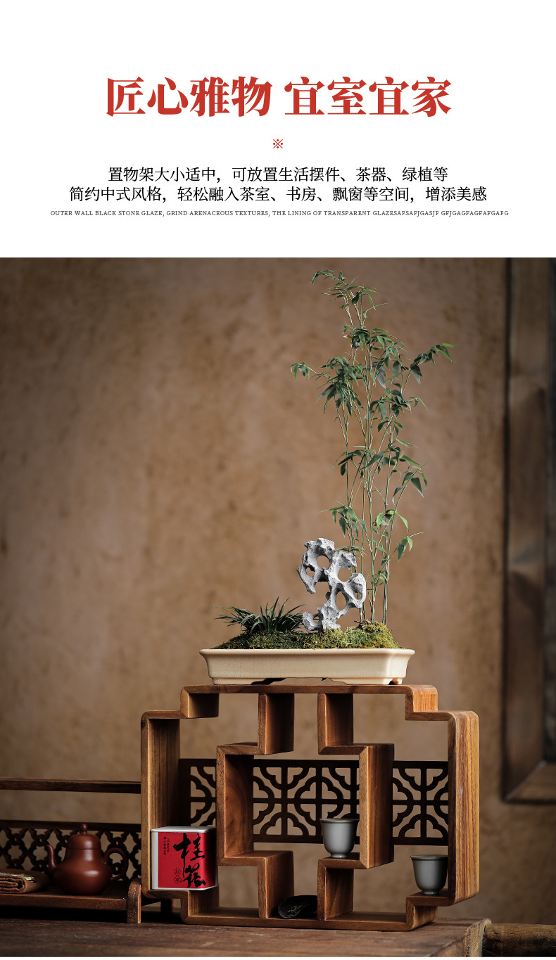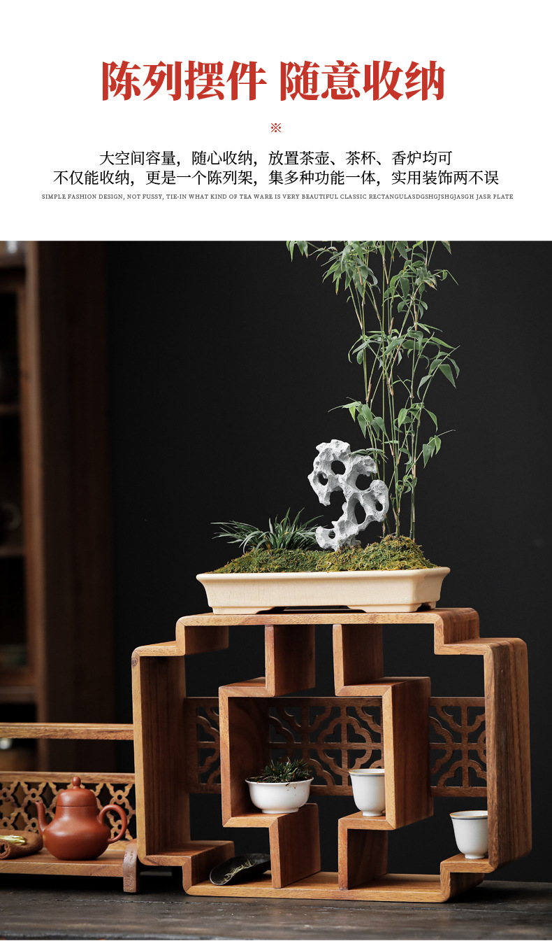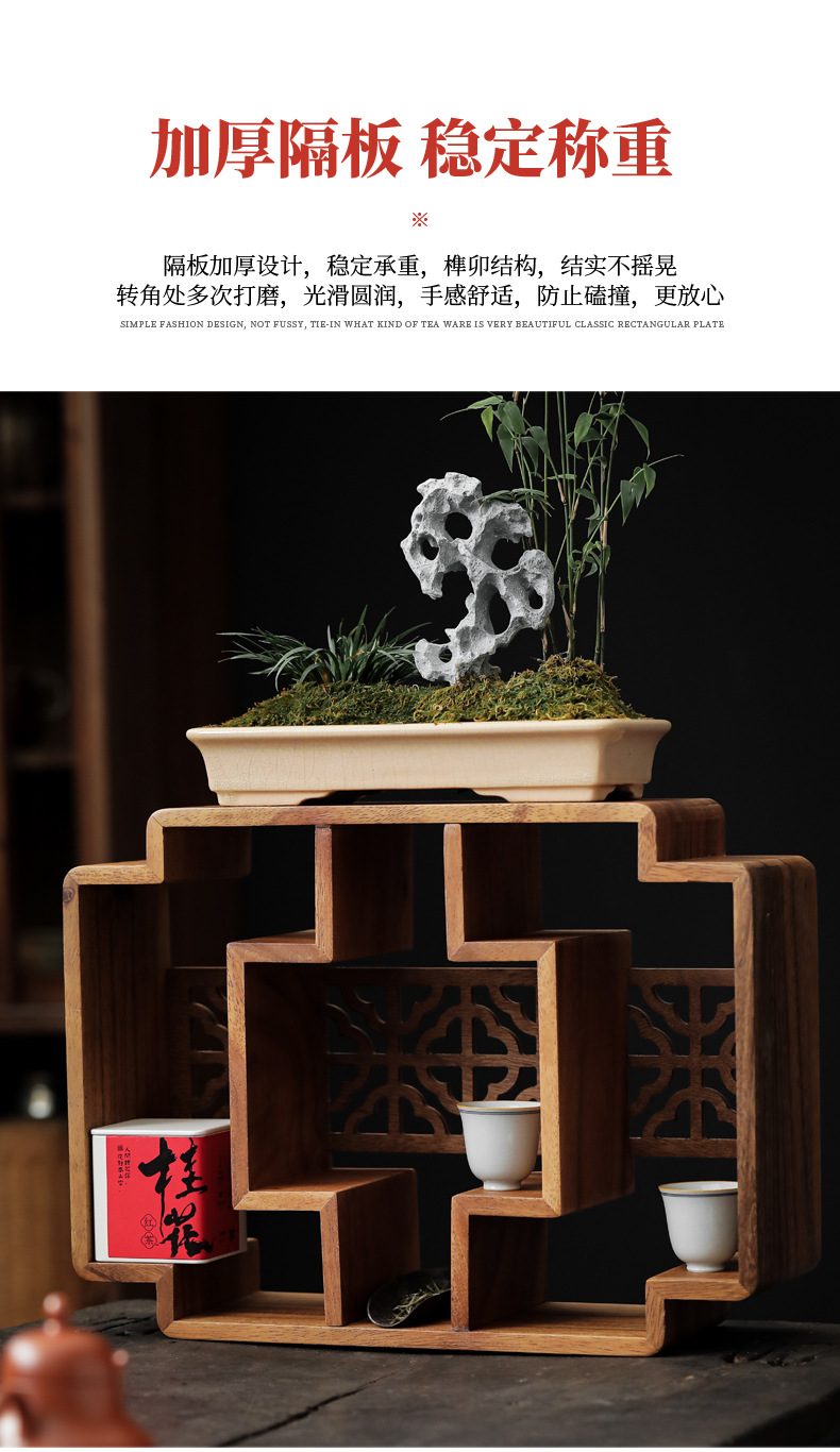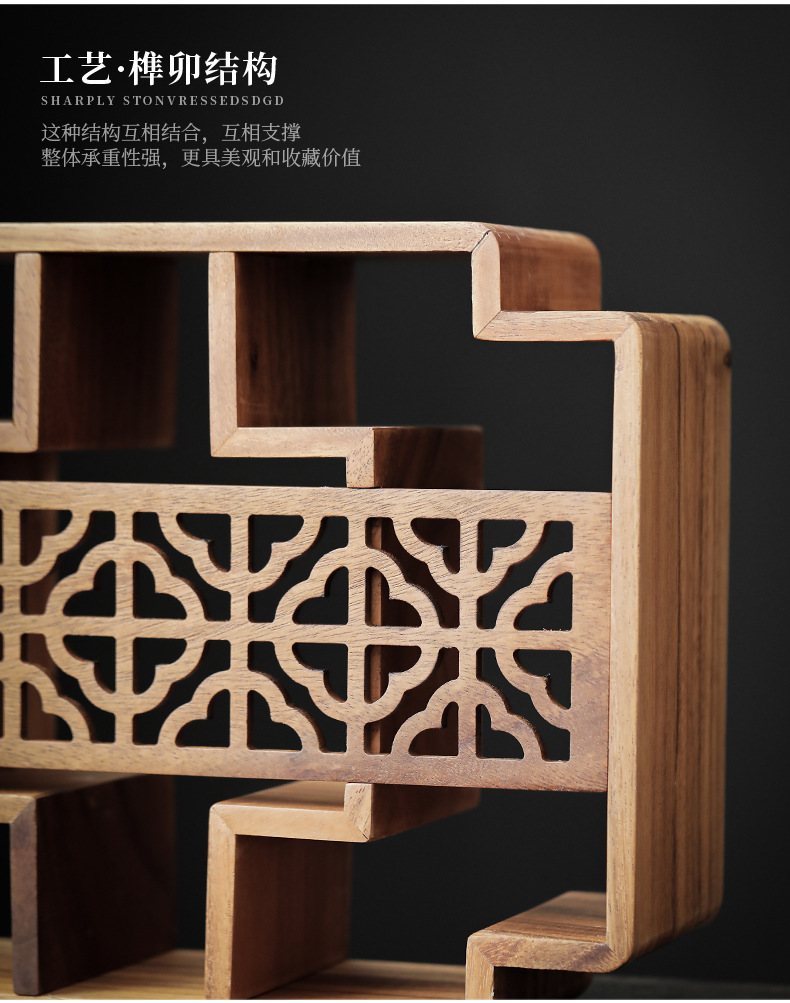 南美胡桃木博古架桌面新中式多宝阁茶杯茶壶展示架方形格子置物柜 投诉