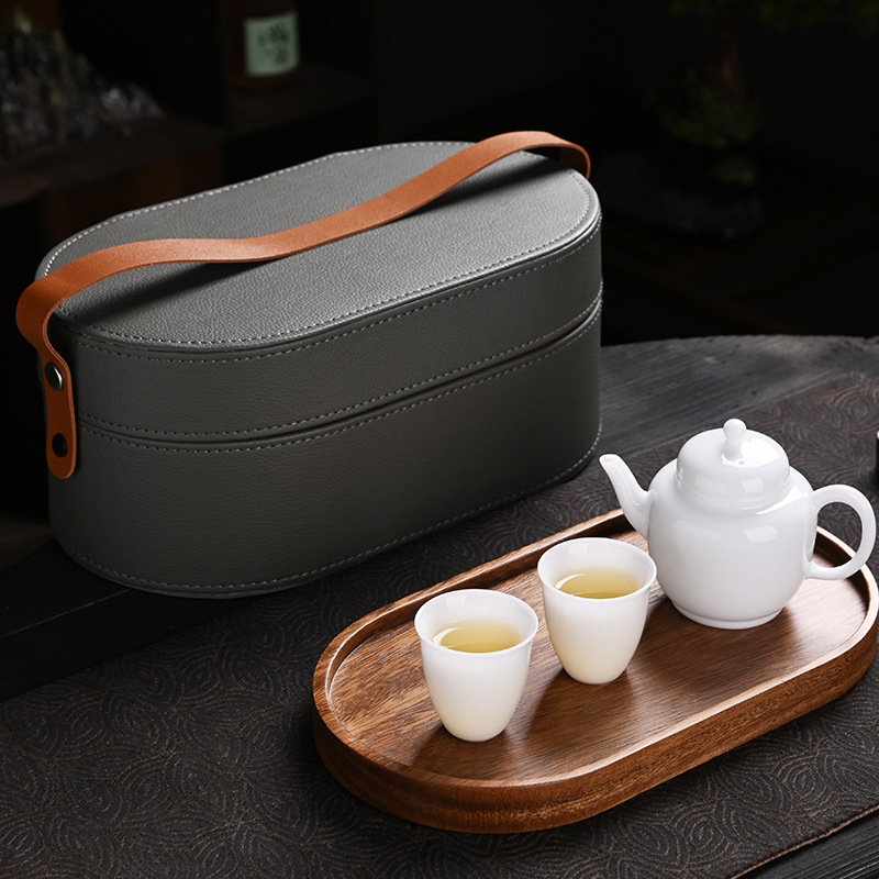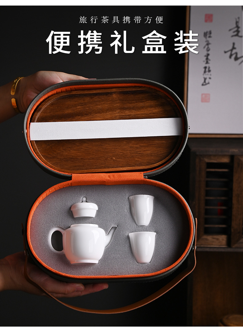 冰种玉瓷旅行茶具德化白瓷功夫茶具高档礼盒一壶两杯茶盘托盘便携