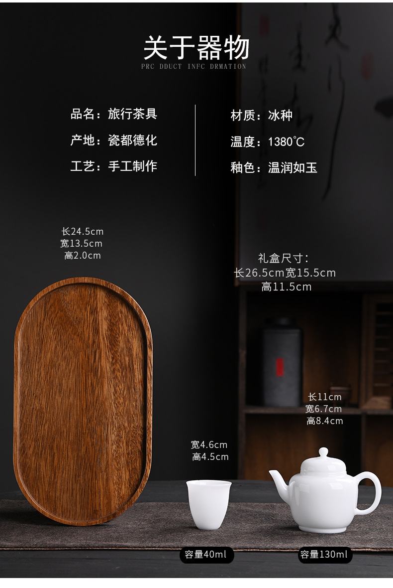 冰种玉瓷旅行茶具德化白瓷功夫茶具高档礼盒一壶两杯茶盘托盘便携 投诉