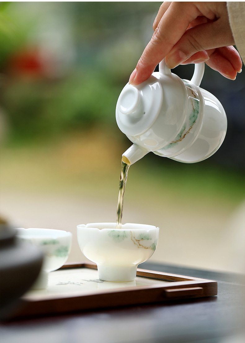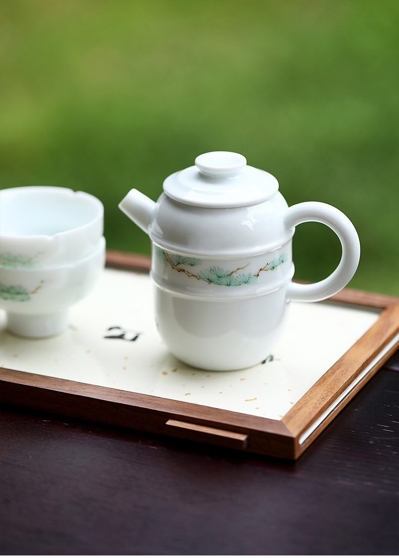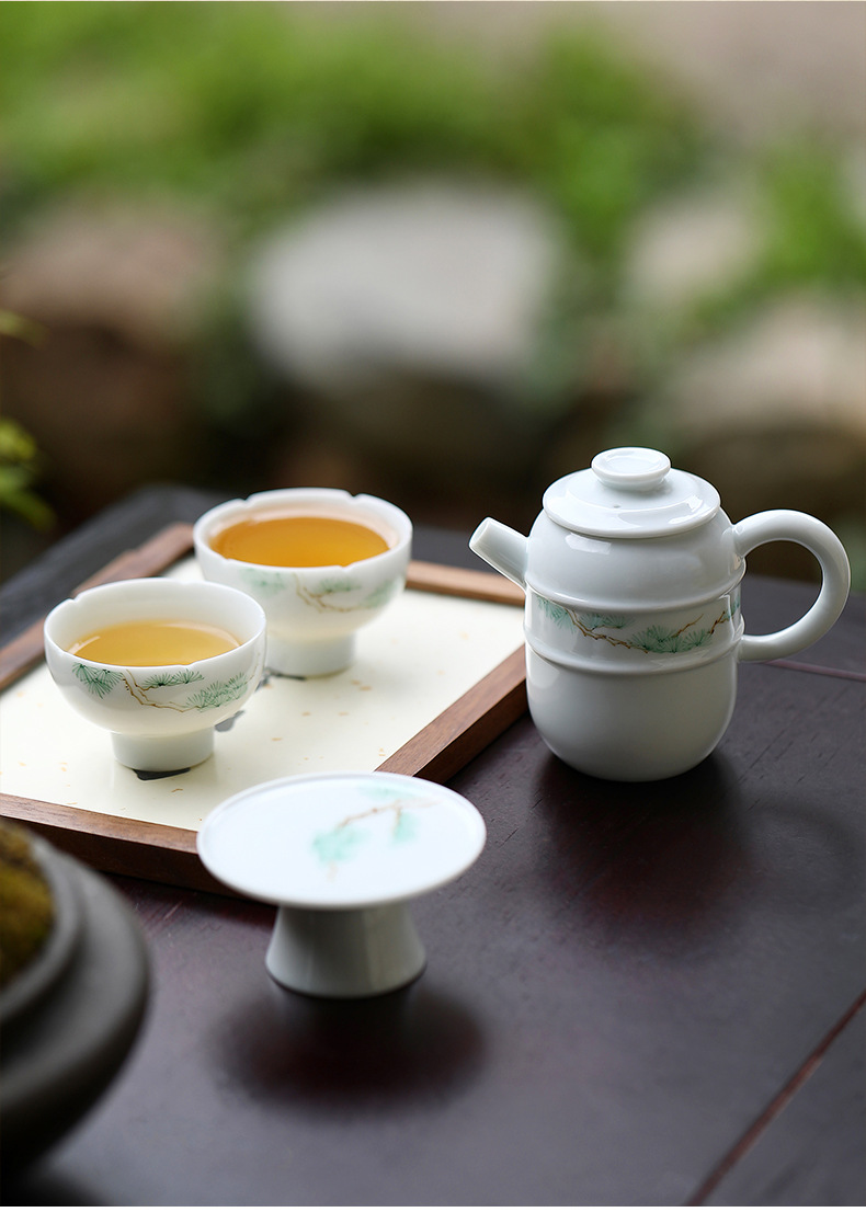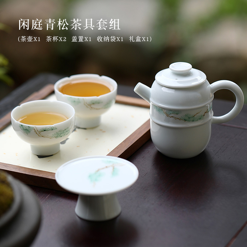 闲庭青松一壶两杯简约陶瓷小型茶具套装单人喝茶一人泡茶具礼盒装
