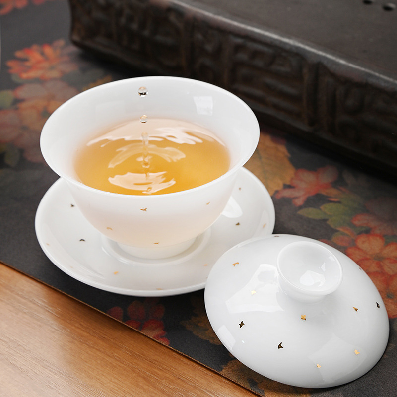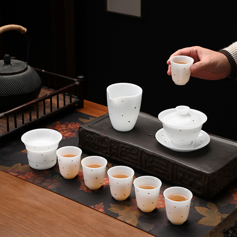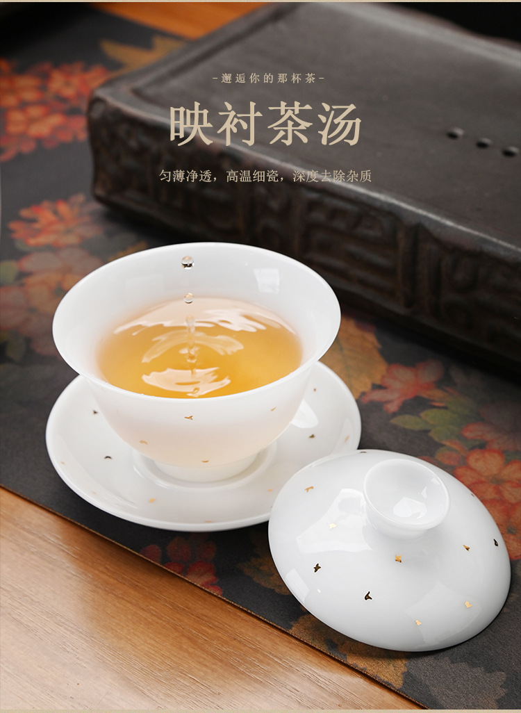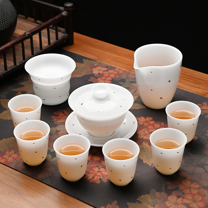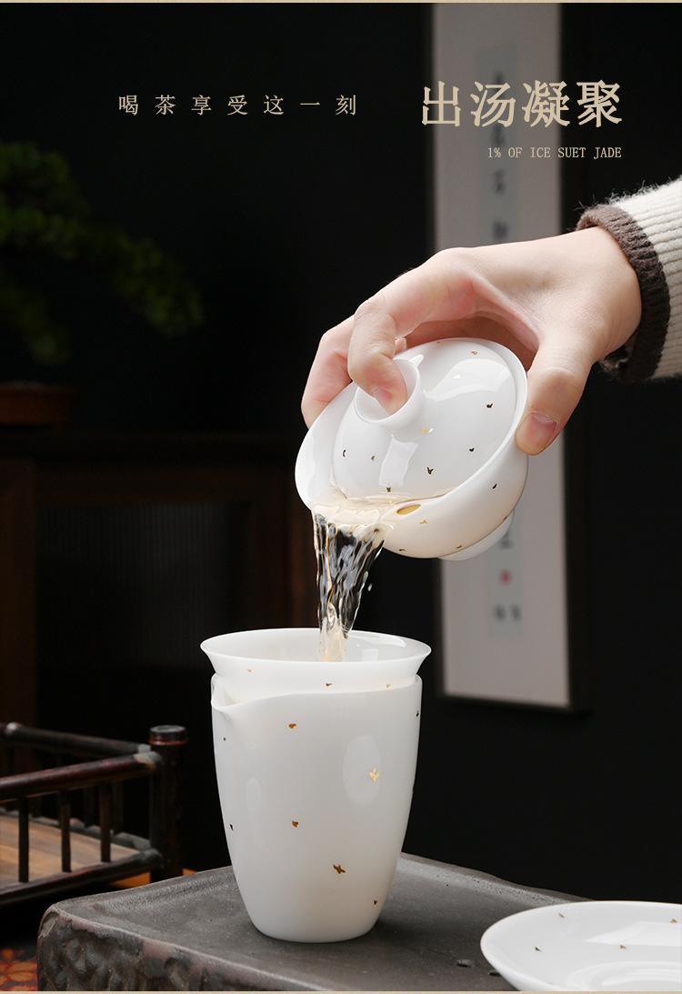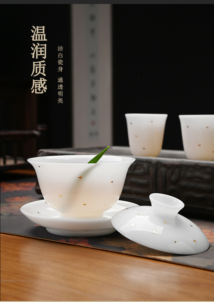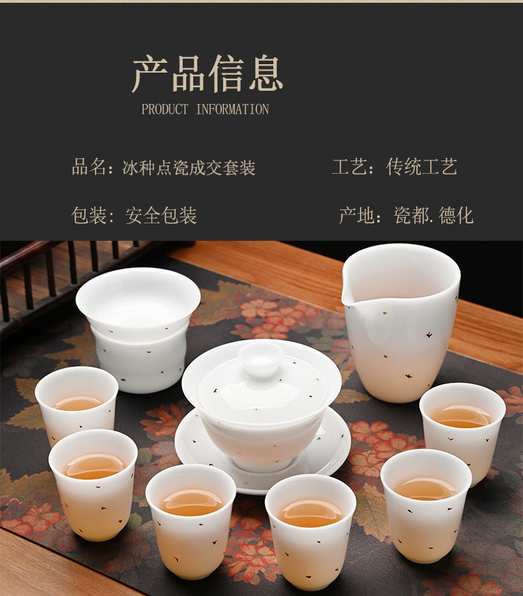 冰种玉瓷茶具套装中式整套礼盒装家用德化白瓷功夫盖碗茶杯送礼盒