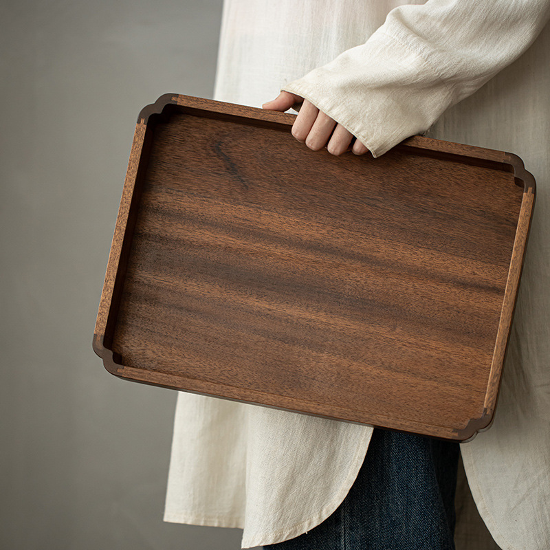 胡桃木托盘方形餐盘家用实木早餐干果盘木质茶盘点心盘壶承干泡盘