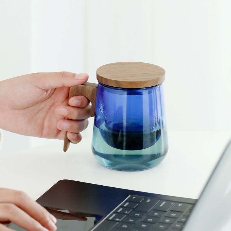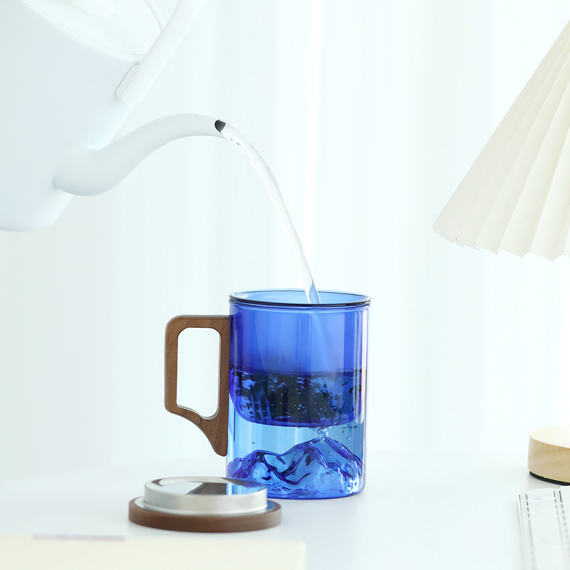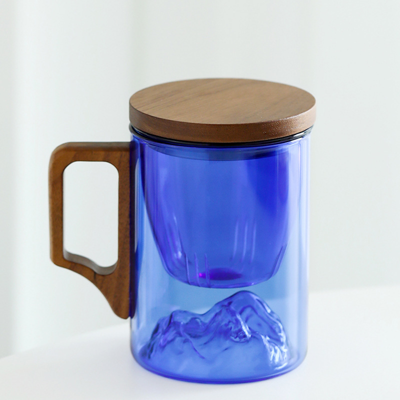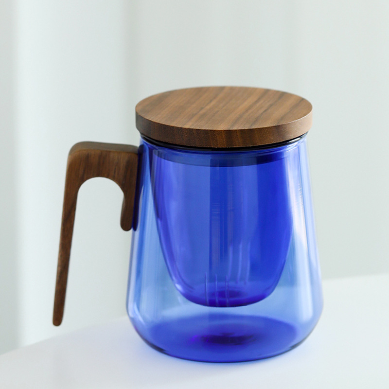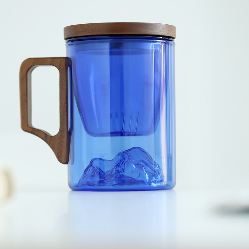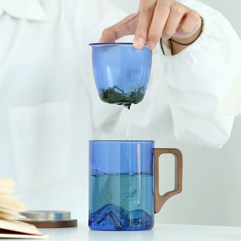 克莱因蓝玻璃茶杯水杯耐热茶水分离泡茶杯观山杯大容量带盖过滤