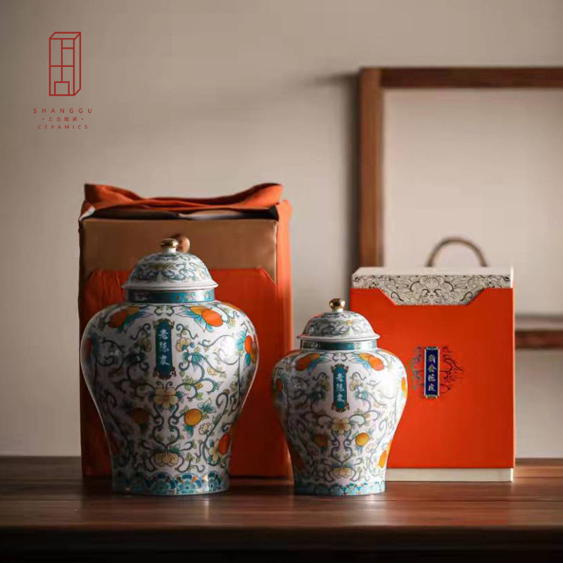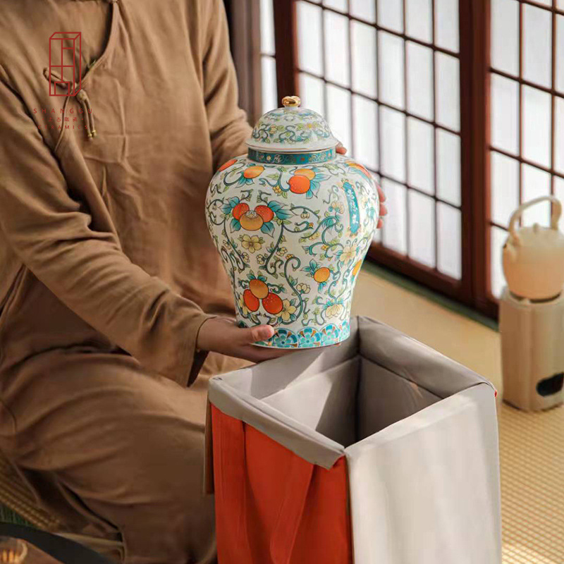 新会陈皮罐陶瓷 大号半斤装防潮罐 老陈皮存储罐密封罐陶瓷茶叶罐