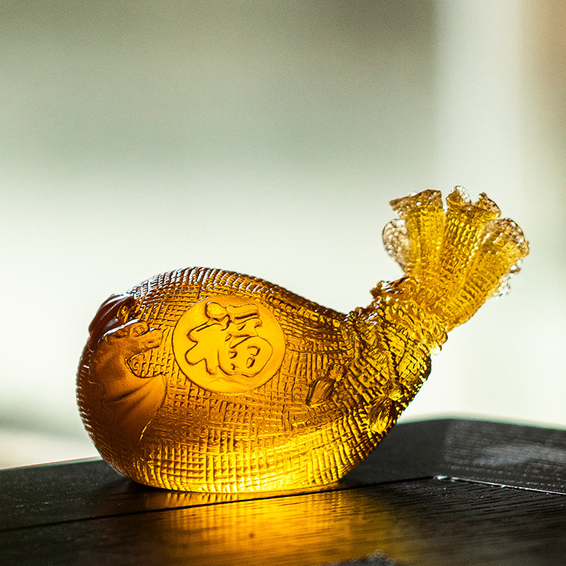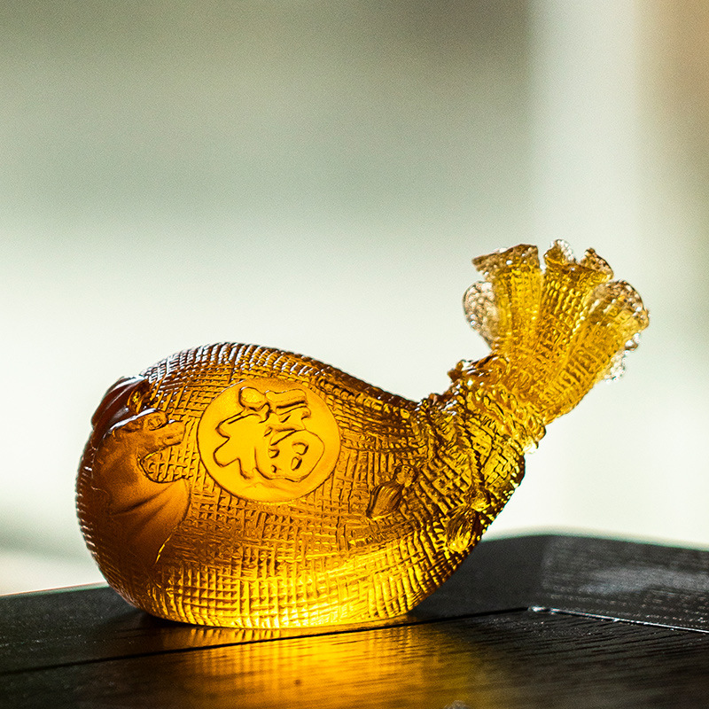 琉璃摆件钱袋福袋琉璃茶宠开业乔迁婚礼礼品家居装饰卓桌面摆件