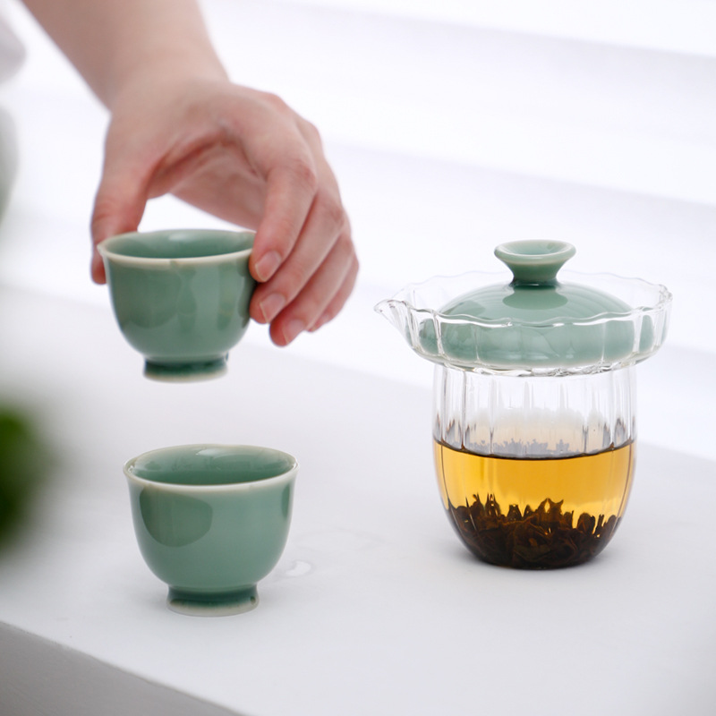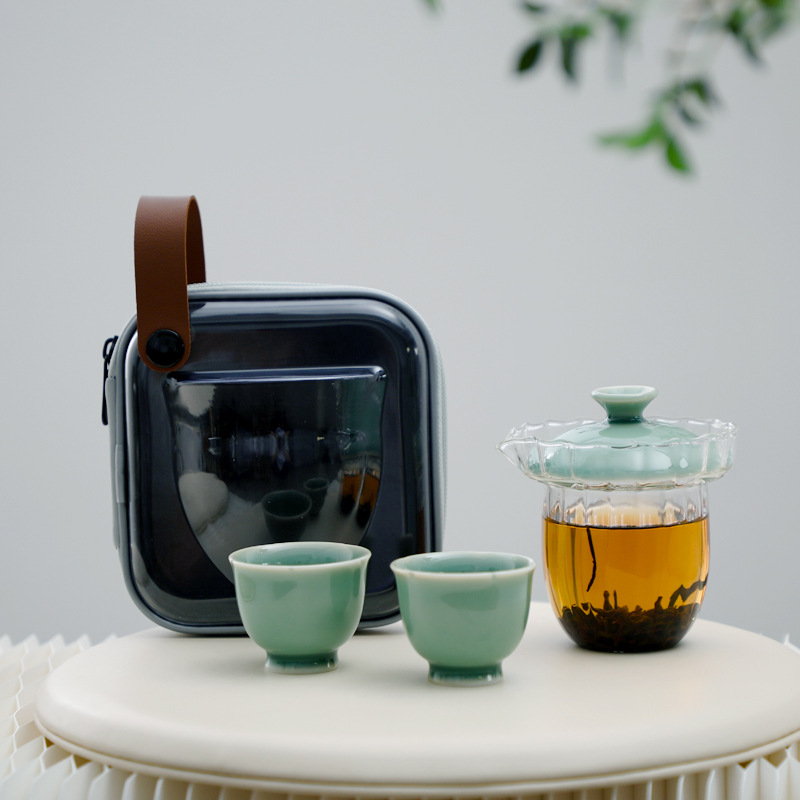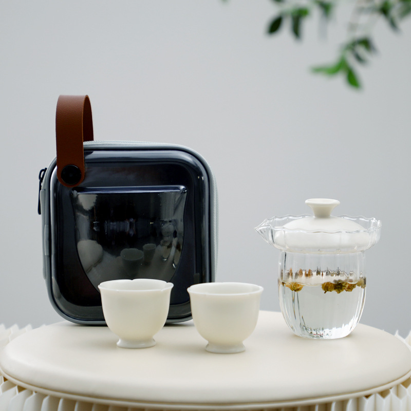 玻璃旅行茶具套装单人户外便携式白瓷青瓷老虎快客杯一壶两杯二杯