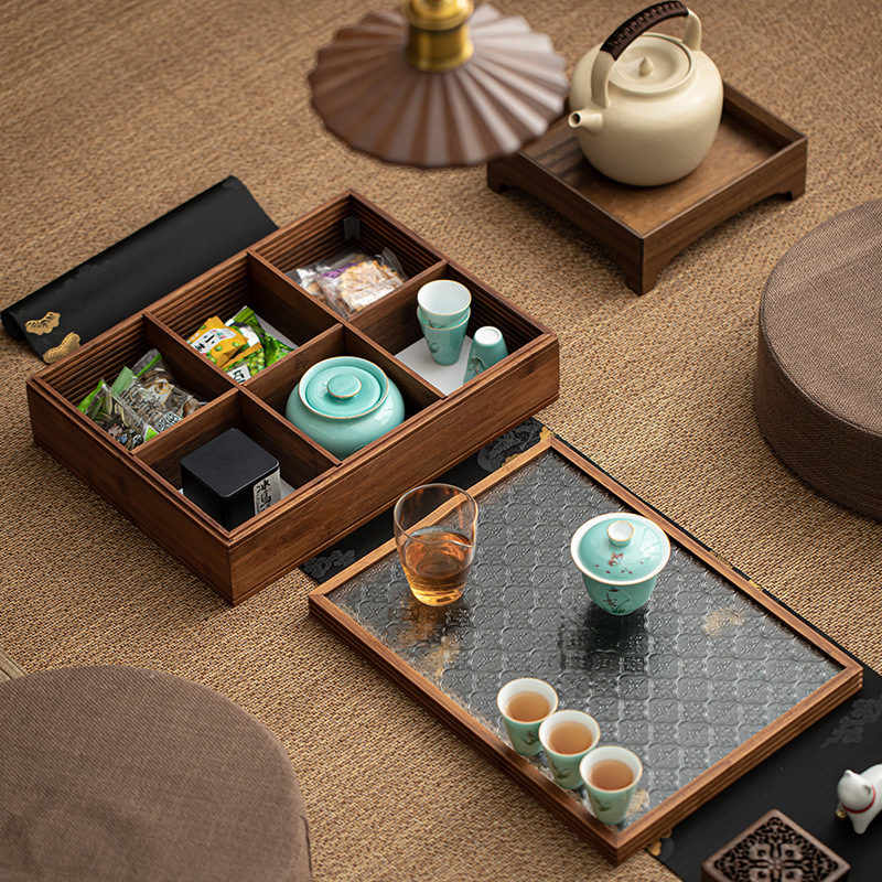 多能能茶具收纳盒茶盘托盘壶承玻璃木干泡功夫茶具套装家用旅行