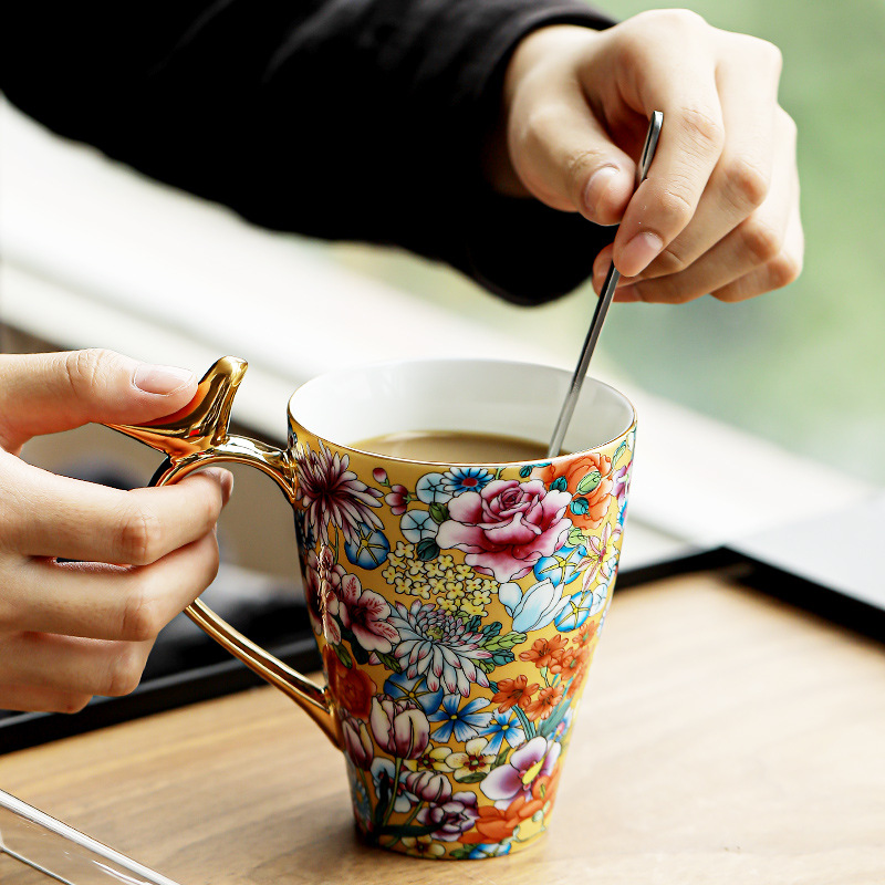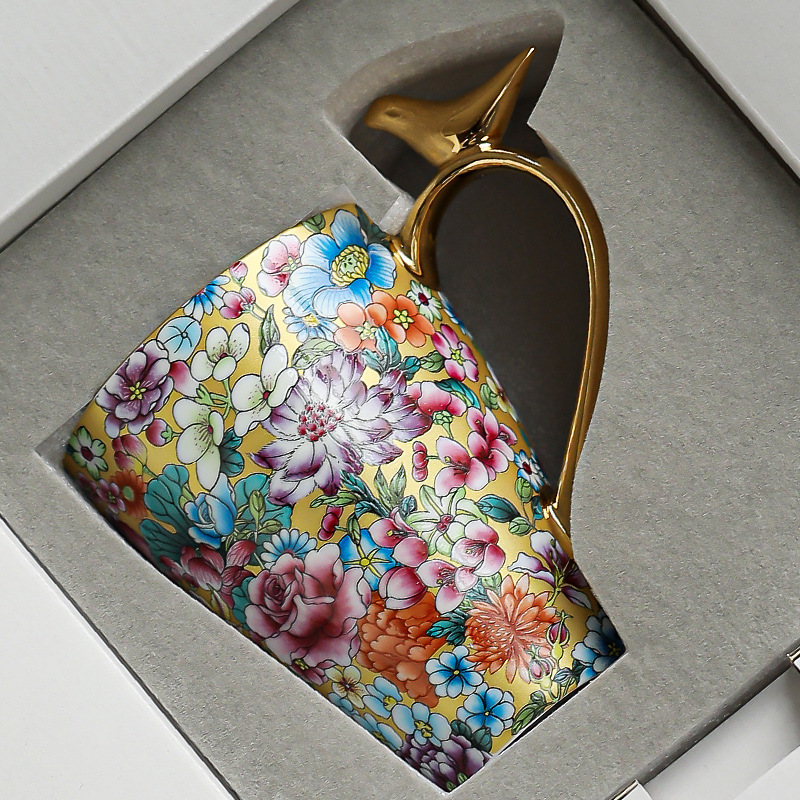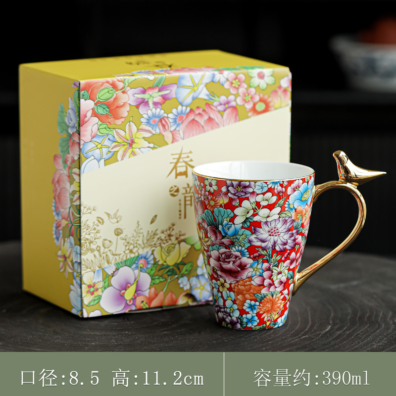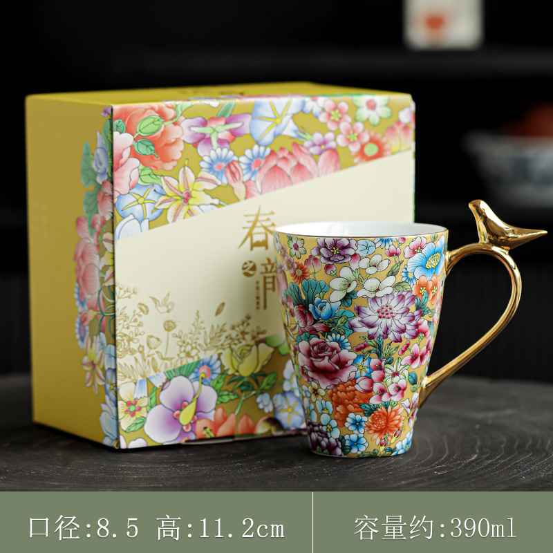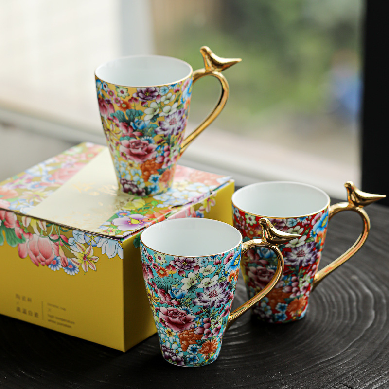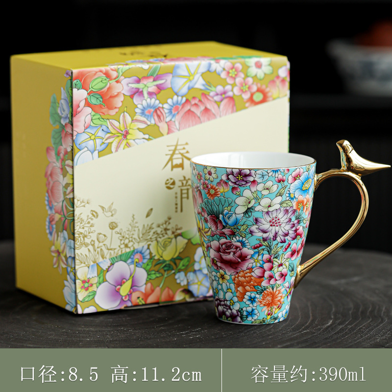 珐琅彩水杯陶瓷茶杯个人专用水杯喝茶杯泡茶杯马克杯咖啡杯礼盒装