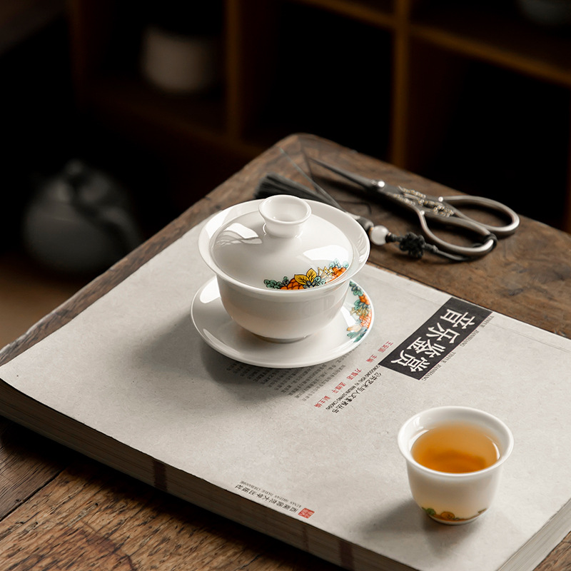 3g盖碗茶杯茶碗小号泡茶碗茶艺师三才碗凤凰单丛岩茶小盖碗茶室