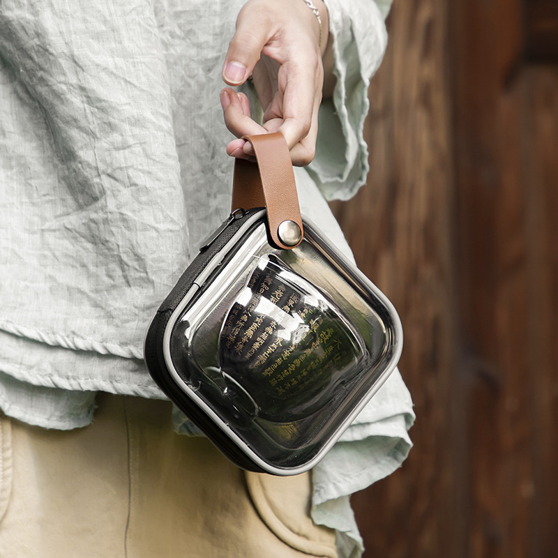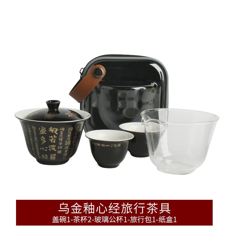 心经便携茶具禅意盖碗玻璃茶具快客杯旅行茶具露营商务伴手礼两杯