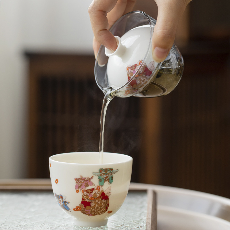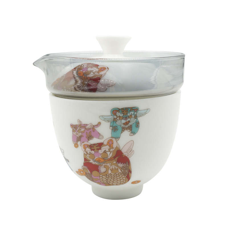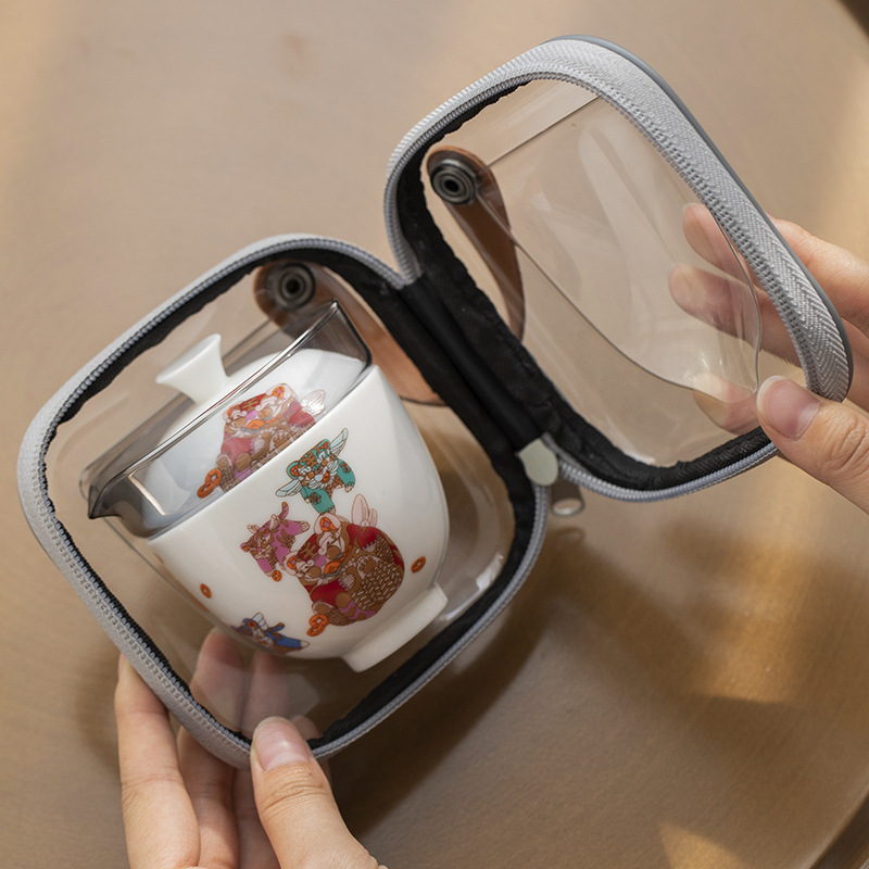 如虎添亿玻璃旅行茶具套装单人户外便携式白瓷老虎快客杯一壶一杯