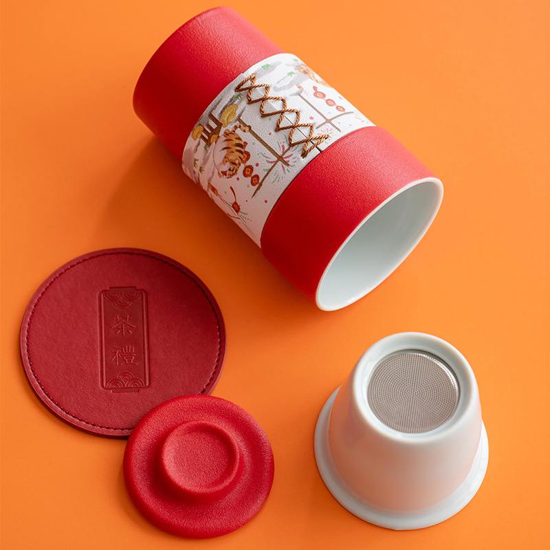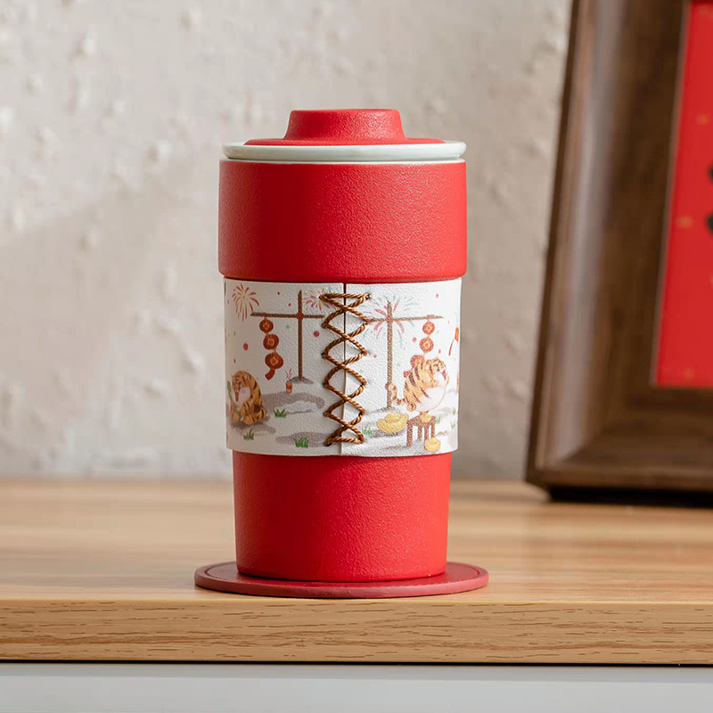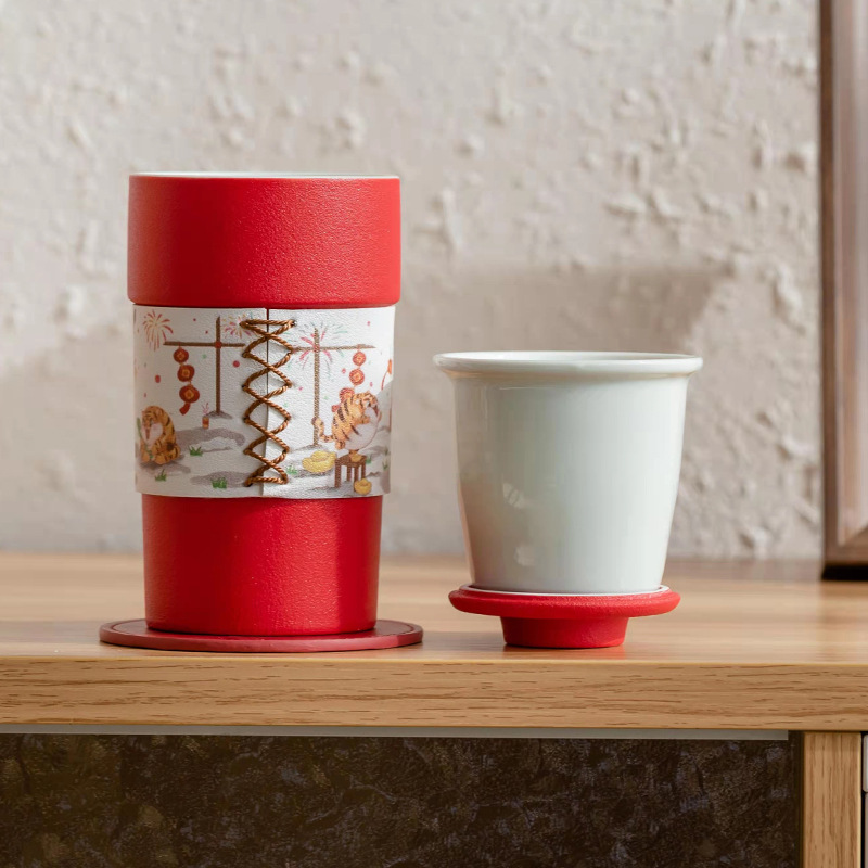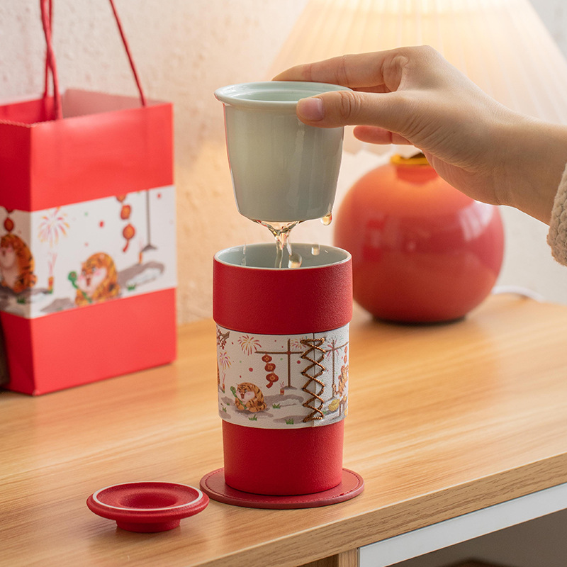 茶杯陶瓷带盖茶水分离杯泡茶杯大容量过滤水杯办公送礼虎年杯子