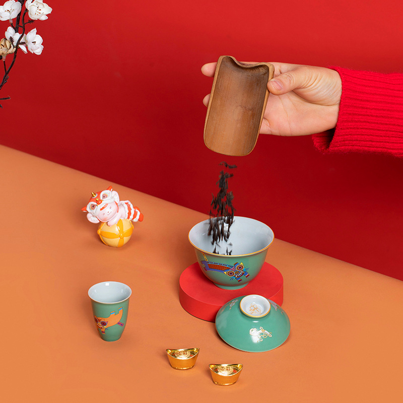三才盖碗陶瓷虎年茶壶泡茶碗茶具茶礼新年伴手礼中式茶碗家用茶艺