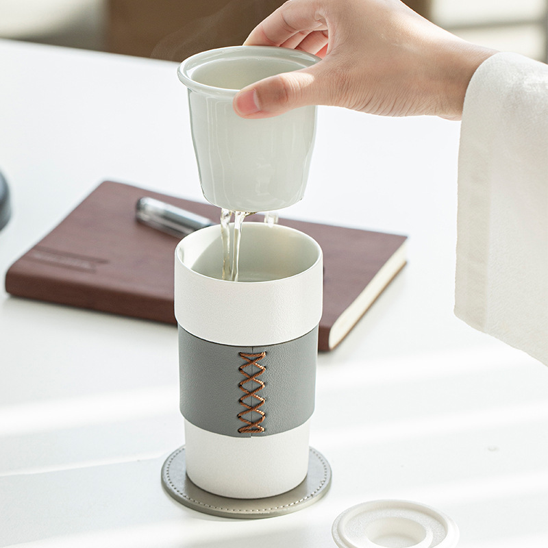 陶瓷茶水分离泡茶杯子男女士个人专用办公室杯过滤茶漏大容量带盖