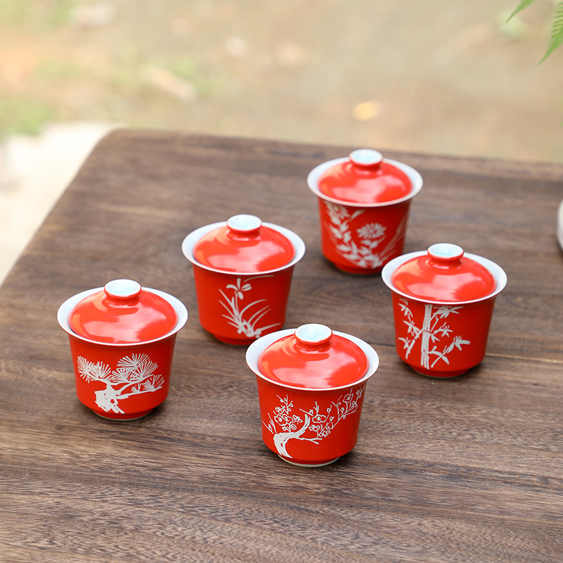 盖碗茶杯茶碗大号茶具手绘银花泡茶碗套装陶瓷功夫三才碗单个 投诉