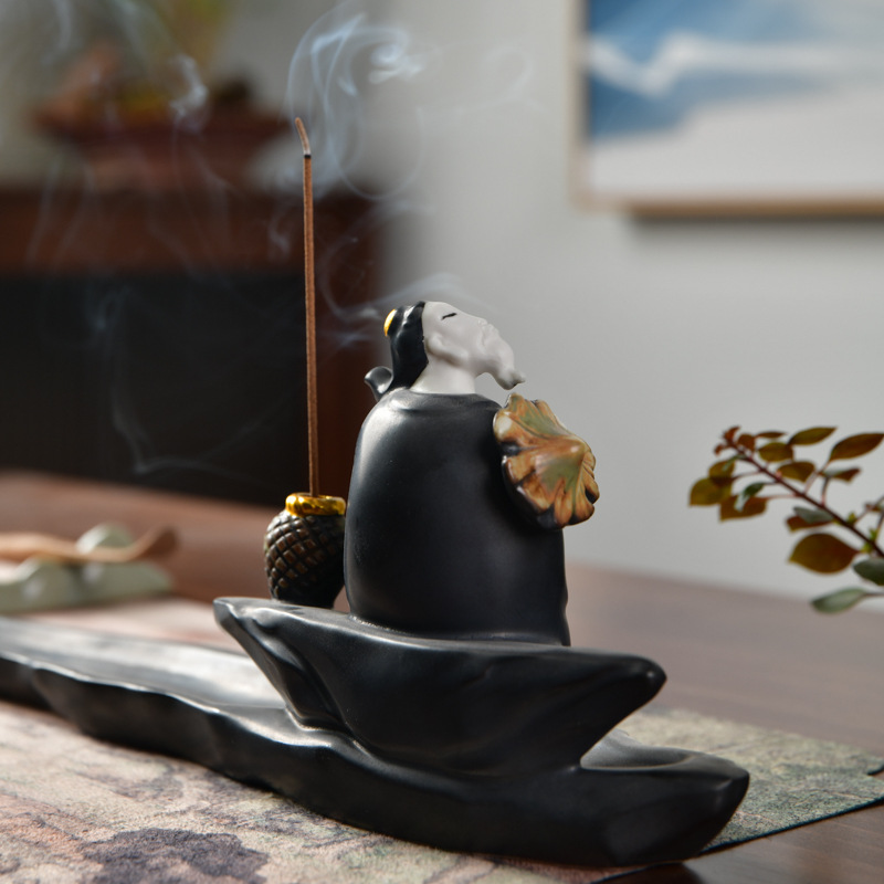 陶瓷手工香炉香插香道家用线香炉居室香托陶瓷炉铁胎线香插香薰炉