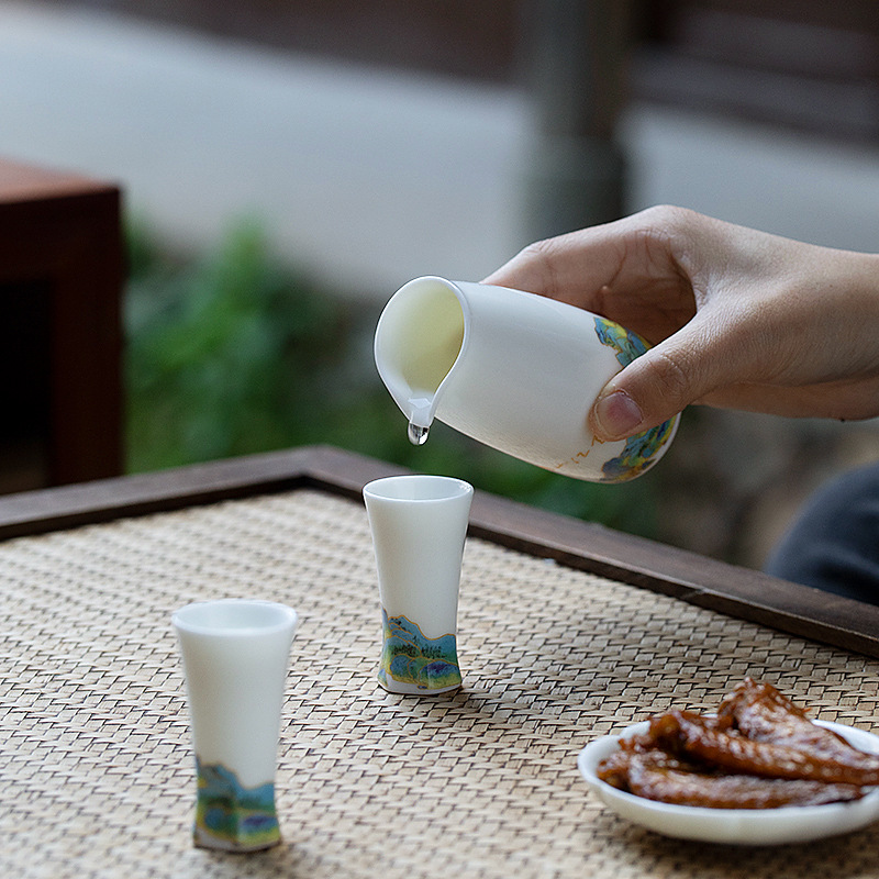 陶瓷酒具套装酒壶小酒盅清酒杯喝酒杯白酒杯分酒器一口杯千里江山