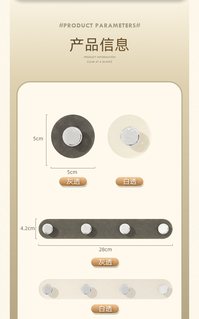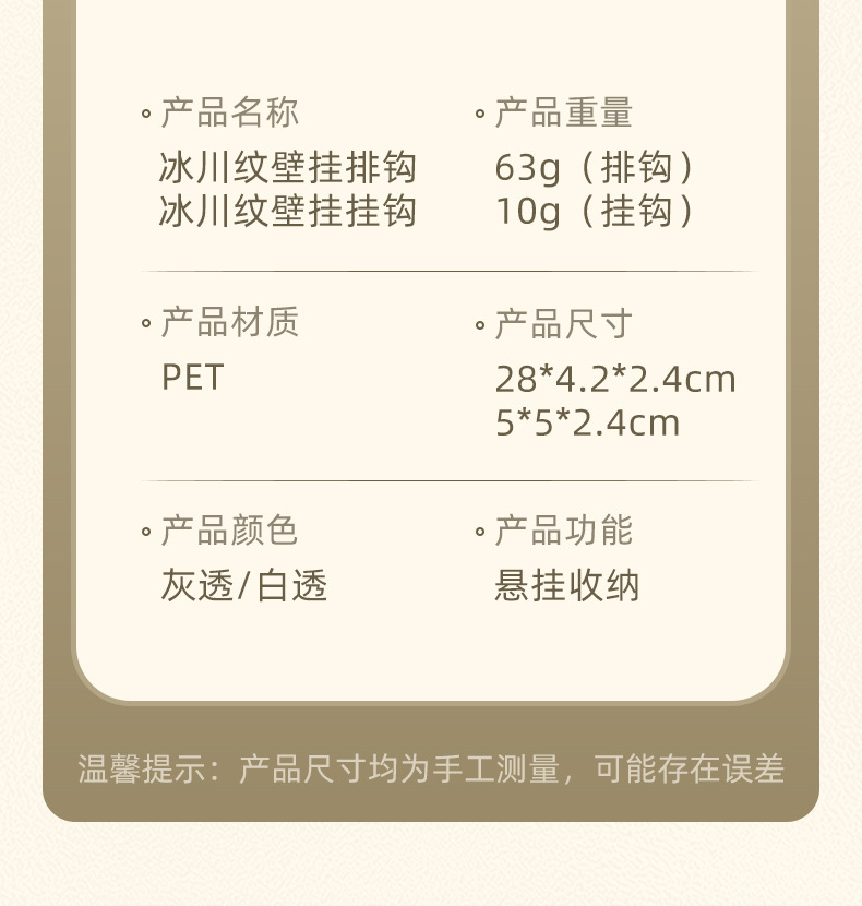 材质尺寸:PET,四钩:28*4.2*2.4cm单钩: 5*5*2.4cm