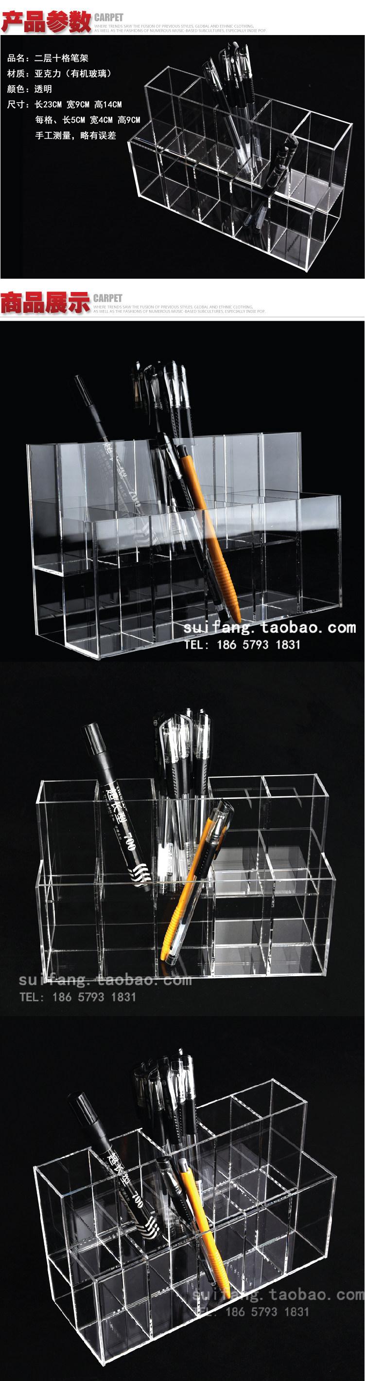 亚克力笔筒/口红/唇彩展示架 二层十格笔架 阶梯型笔架指甲油架 投诉