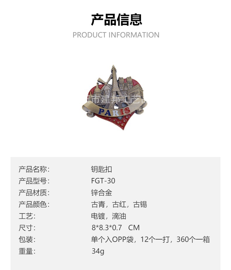 金属旅游纪念品法国巴黎PARIS埃菲尔铁塔凯旋门强磁锌合金冰箱贴 投诉
