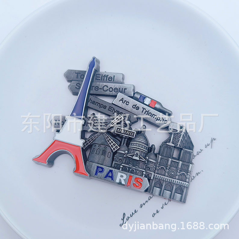 金属旅游纪念品法国巴黎埃菲尔铁塔凯旋门圣母院锌合金冰箱贴