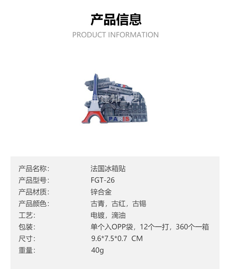 金属旅游纪念品法国巴黎埃菲尔铁塔凯旋门圣母院锌合金冰箱贴 投诉