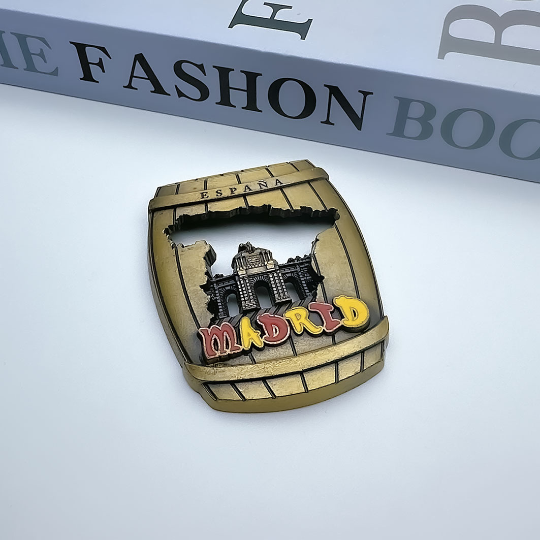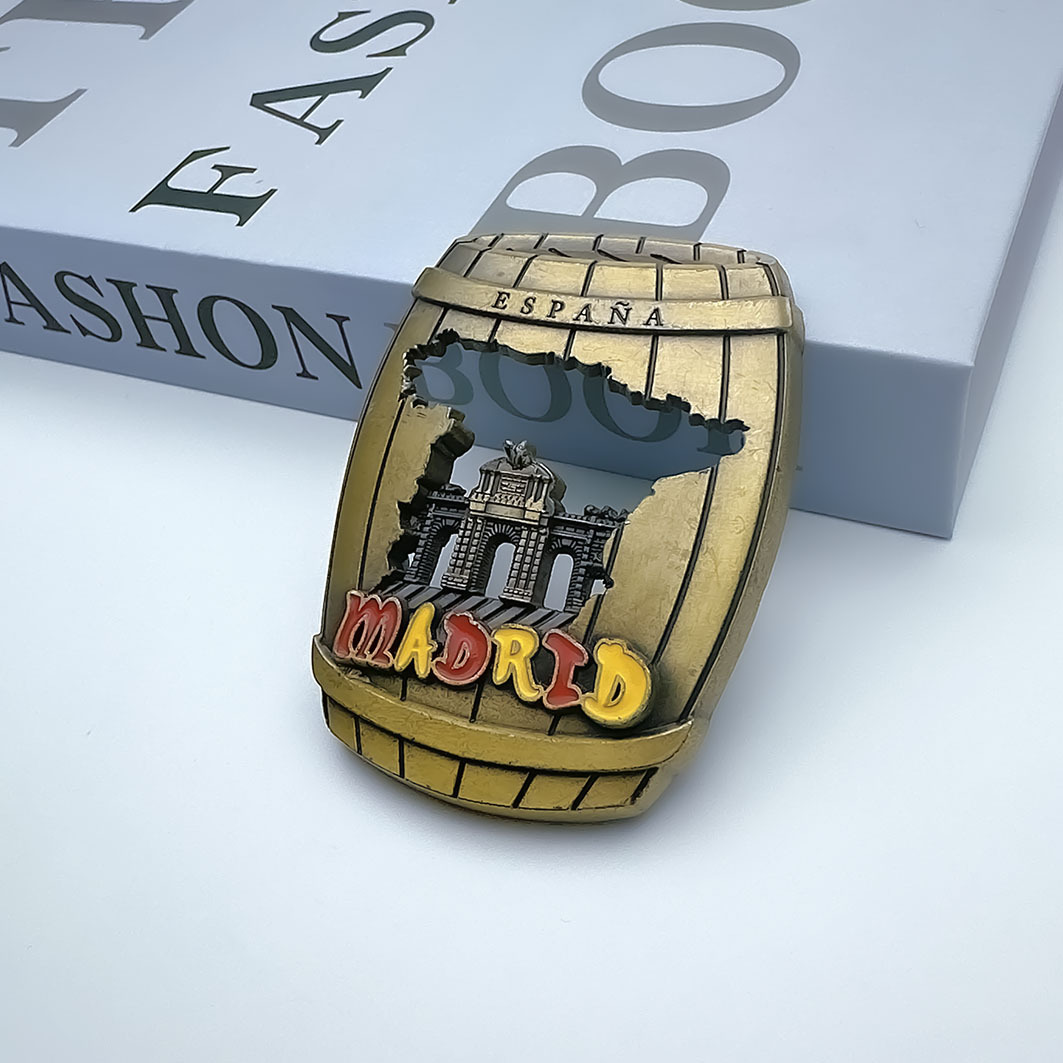 厂家免费设计西班牙马德里等欧美旅游纪念品创意酒桶金属冰箱贴